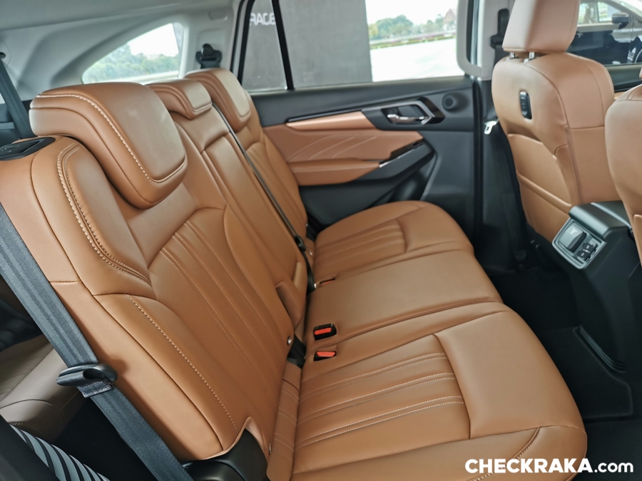 รถยนต์แบบ 7 ที่นั่ง แน่นอนว่าเบาะแถวที่ 3 มักถูกมองว่าจะต้องเป็นเบาะสำรอง มีเผื่อไว้ หรือให้เด็กเล็กนั่ง แต่ในมิวเอ็กซ์ ใหม่ กลับไม่เป็นเช่นนั้นครับ เพราะว่าจากที่เคยเข้าไปลองนั่ง กลับรู้สึกว่า การเข้าออกง่าย ช่องขึ้น-ลงกว้าง ตัวเบาะนั่งแถวที่ 3 ก็รองรับสรีระได้ค่อยข้างดี ที่สำคัญเหลือพื้นที่วางขาเยอะขึ้นกว่ารุ่นก่อนหน้า เนื่องจากตัวถังที่ถูกยืดให้ยาวมากขึ้นนั่นเอง ดังนั้น ไม่ว่าเด็ก ผู้ใหญ่ ก็สามารถนั่งได้จริง และไม่อึดอัดอีกด้วย