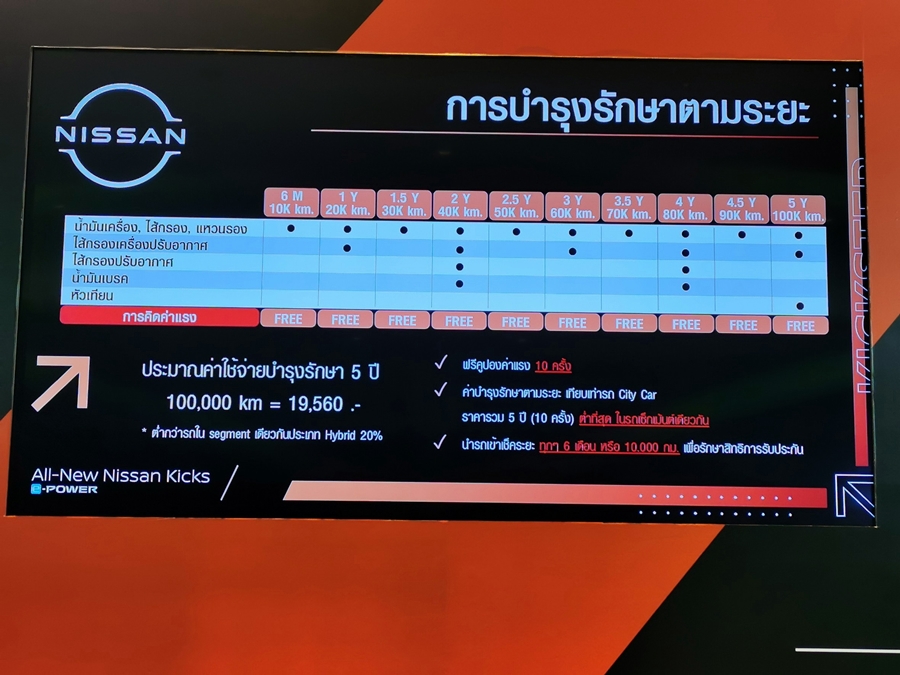 ความประหยัดอาจไม่ใช่แค่เรื่องของอัตราสิ้นเปลืองเพียงอย่างเดียว เพราะต้องคำนึกถึงเรื่องการใช้งานระยะยาว สำหรับนิสสัน คิกส์ นั้น ประหยัดในส่วนของการเช็คระยะที่มีค่าบำรุงรักษาต่ำพอกับอีโค่คาร์ ใน 5 ปีหรือ 100,000 กม. เพียง 19,560 บาท รับประกันรถ 3 ปี 100,000 กม. ระบบ e-POWER 5 ปี แบตเตอรี่ 10 ปี