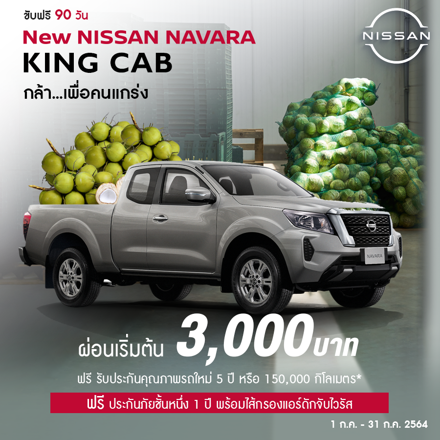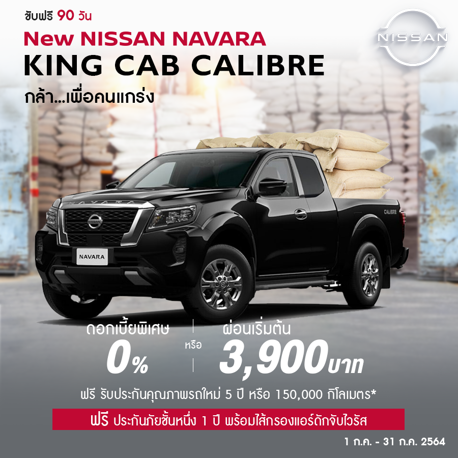 *** ขับฟรีสูงสุด 90 วัน เฉพาะระยะเวลาการผ่อนชำระไม่เกิน 72 เดือน เท่านั้น / เฉพาะที่รับรถและเป็นสัญญาในเดือนพฤษภาคม 2564 จะเริ่มผ่อนชำระงวดแรกในวันที่ 25 สิงหาคม 2564 / ทั้งนี้เงื่อนไขการอนุมัติสินเชื่อและอื่นๆเป็นไปตามหลักเกณฑ์การพิจารณาของบริษัท นิสสัน ลีสซิ่ง (ประเทศไทย) จำกัด