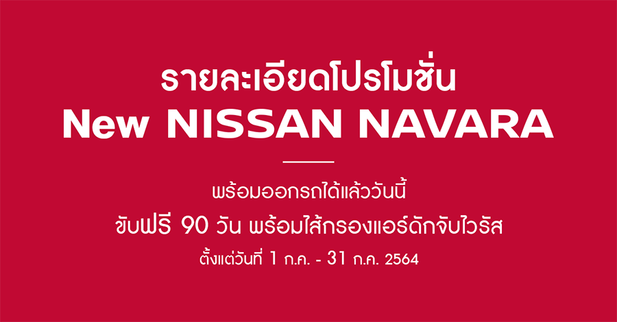 * ข้อเสนอนี้สำหรับลูกค้าที่ผ่านการพิจารณาภายใต้เงื่อนไขและทำสัญญาเช่าซื้อกับบริษัท นิสสัน ลีสซิ่ง (ประเทศไทย) จำกัด เท่านั้น