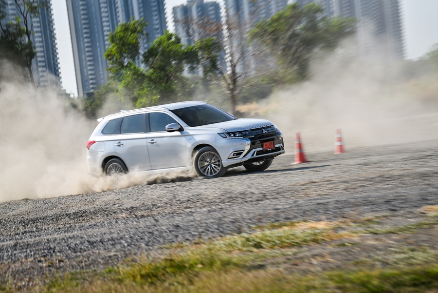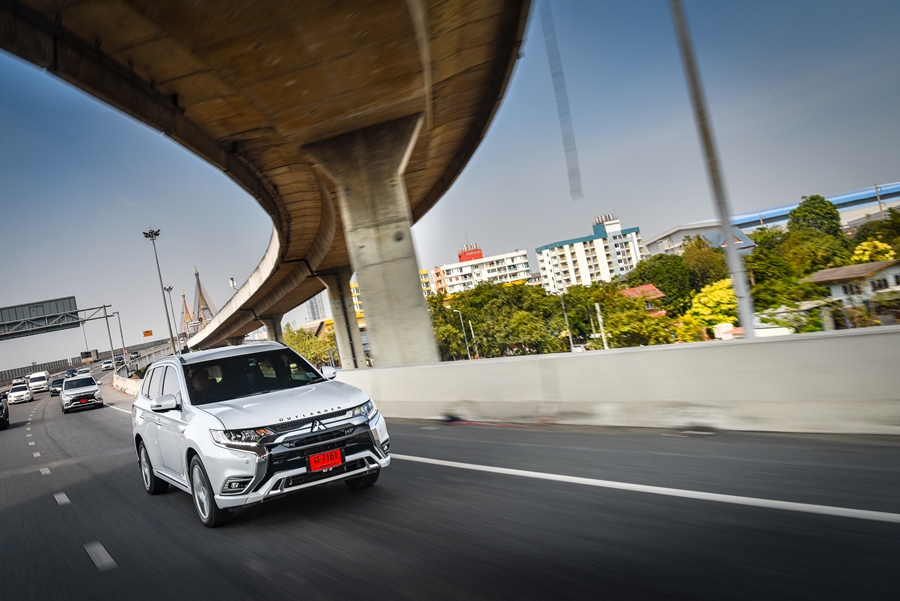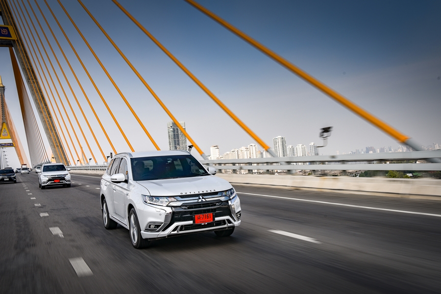Mitsubishi Outlander PHEV รถยนต์ที่ใช้ได้ทั้ง 2 ระบบคือ น้ำมันและไฟฟ้า เมื่อชาร์จไฟรถยนต์จนเต็มสามารถวิ่งด้วยไฟฟ้า 100% ได้ไกลถึง 55 กม. ด้วยแบตเตอรี่ลิเธียมไอออนขนาดใหญ่ 13.8 กิโลวัตต์/ชั่วโมง ความเร็วสูงสุดด้วยมอเตอร์ไฟฟ้าได้ถึง 135 กม./ชม.