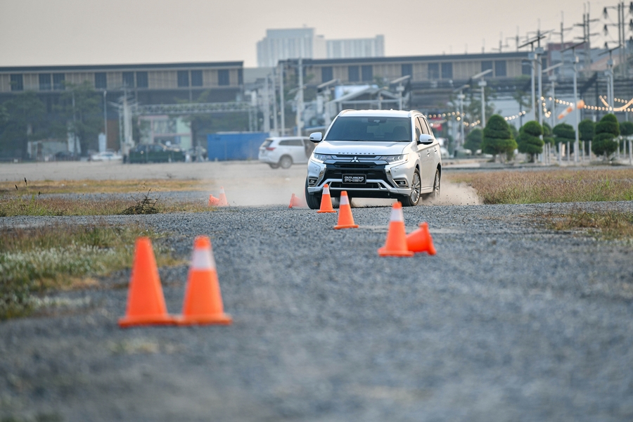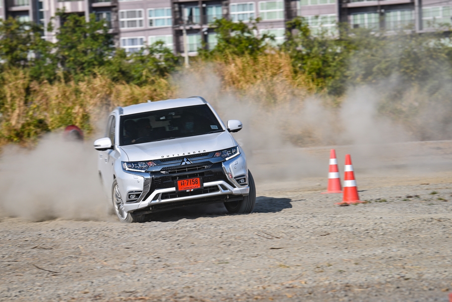เมื่อกลับถึงลานริมทะเลสาบทีมงานได้จัดจุดทดสอบ "ทางฝุ่น" เอาไว้ให้ลองสัมผัสสมรรถนะระบบ AWD หรือ S-AWC ขับในแทร็กทางฝุ่นสั้น ๆ มีเร่งออกตัวจากหยุดนิ่ง เลี้ยวโค้งต่าง ๆ และวนวงกลม ด้วยการทดลองขับ 3 โหมดนั่นคือ Narmal, Sport และ Lock