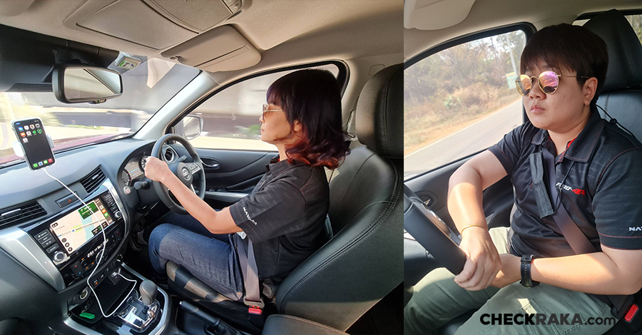ในเส้นทางการทดสอบครั้งนี้นอกจากจะให้ได้สัมผัสกับความคล่องตัว ในสภาพการจราจรในกรุงเทพ ก็ยังได้มาสัมผัสการขับขี่โค้งบ้าง แซงบ้าง และทางขรุขระขึ้นเขา เพื่อไปชมวิวทิวทัศน์หลักล้านที่ทางนิสสัน ได้จัดกิจกรรมเชิงแคมป์ปิ้ง กางเต้นท์สัมผัสสายลม สำหรับ นิสสัน นาวารา เครื่องยนต์ ขนาด 2.3 ลิตร 4 สูบเรียง DOHC ทวินเทอร์โบให้พลังแรงสูงสุด 190 แรงม้า (Ps) และแรงบิด 450 นิวตัน-เมตร (Nm) ระบบเกียร์อัตโนมัติ 7 สปีด (7AT) พร้อมมีโหมดขับขี่แบบแมนนวล (M mode) ทำให้ได้ทั้งพละกำลังและสมรรถนะในการขับขี่ ที่ปรู๊ดปร๊าดดั่งใจ เป็นกระบะที่ผู้หญิงก็ขับง่าย รถไม่สูงเกินไป พวงมาลัยเบา แต่ก็ยังรู้สึกว่าพอเบาไป ตัวรถที่เป็นกระบะจะใหญ่กว่าเก๋ง อาจทำให้บางทีเกิดเหตุฉุกเฉินจะควบคุมลำบาก แต่ก็เชื่ออีกว่าระบบความปลอดภัยที่นิสสันจับมาใส่กระบะ นาวารา 2021 จะควบคุมและตรวจจับสิ่งผิดปกติระหว่างเดินทางได้ทันที แต่ก็เพื่อความปลอดภัยผู้ขับขี่เองต้องระมัดระวังและใช้ความเร็วไม่เกินตามกฎหมายกำหนดนะจ๊ะ