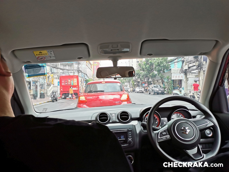 การขับขี่มีสื่อร่วมนั่งไปด้วย 3 คน และมีไซต์ใหญ่น้ำหนักร่วมกว่า 200 กก.กับ Swift จากทั้งหมด 9 คันคนละรุ่น GLX ราคา 629,000 บาทและ GL ราคา 577,000 บาท โดยทีมงานเช็คราคาได้ทดสอบรุ่น GL ตลอดทางรวมกว่า 100 กม.