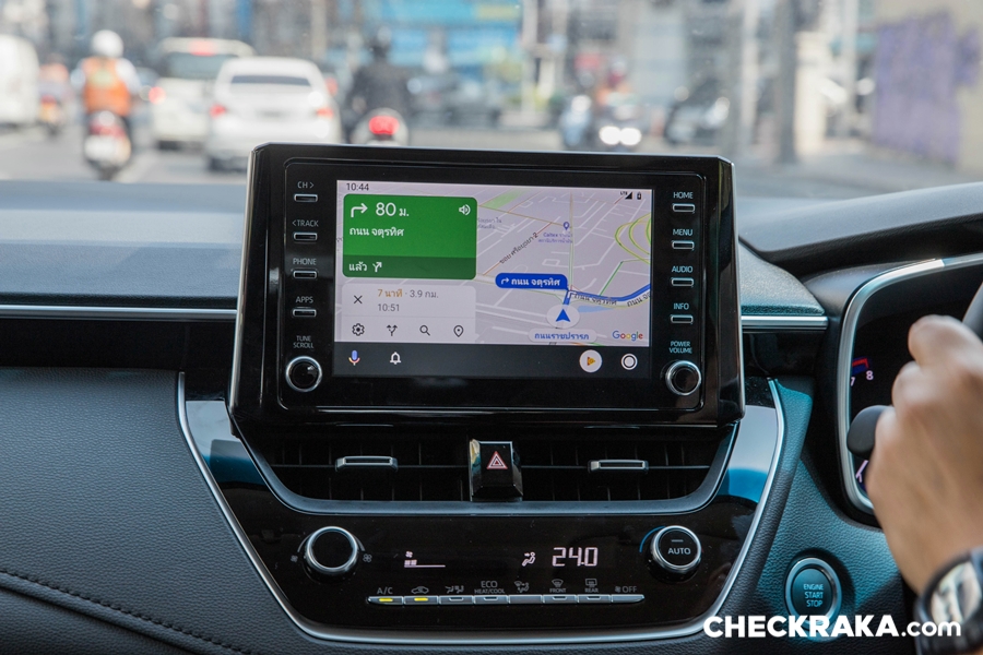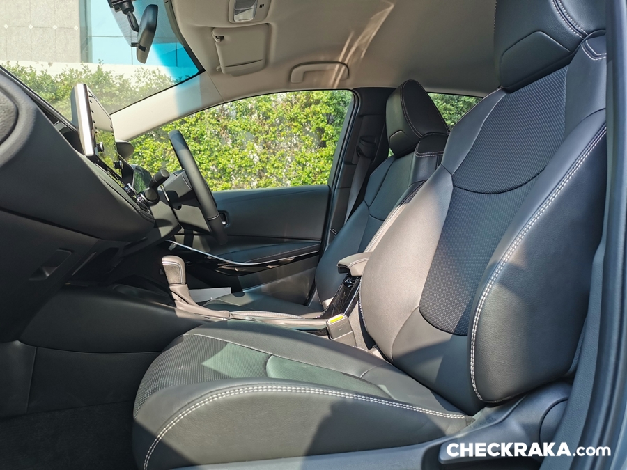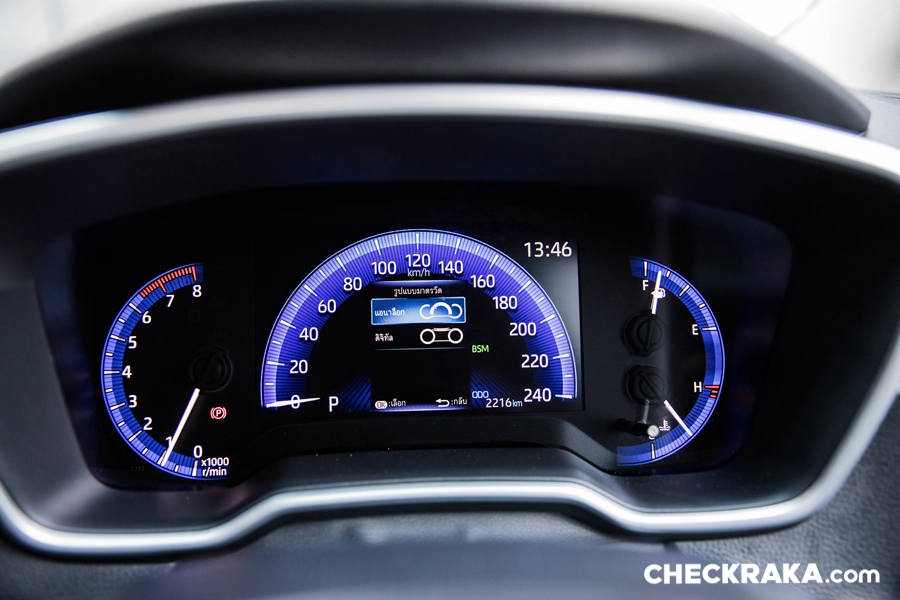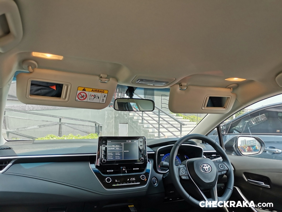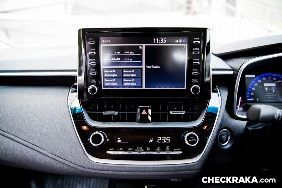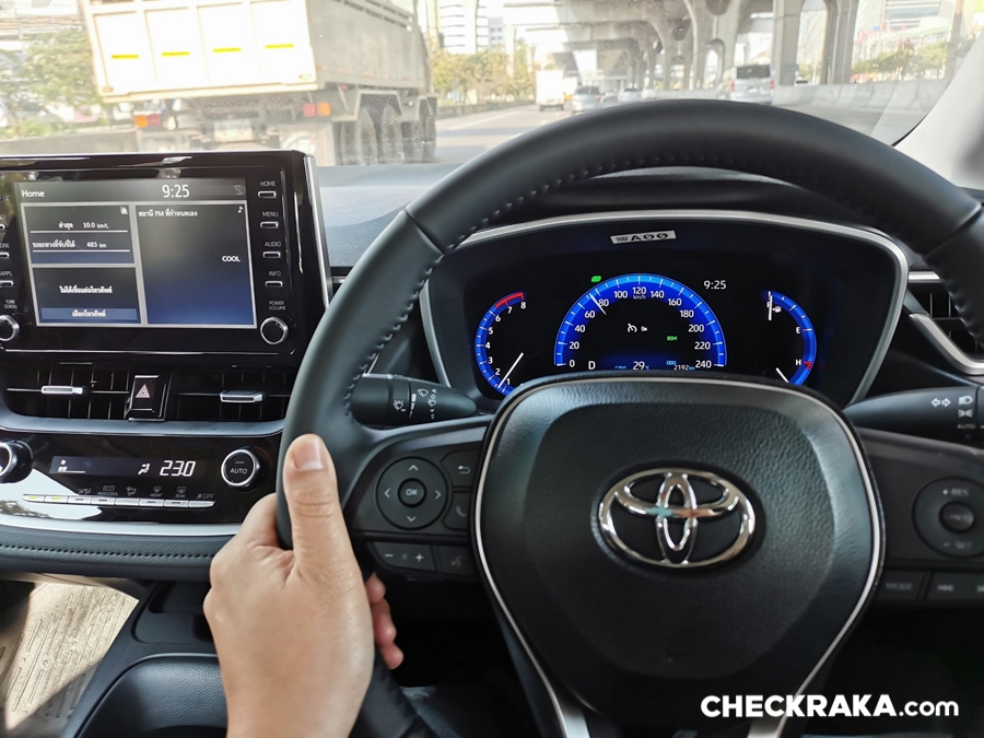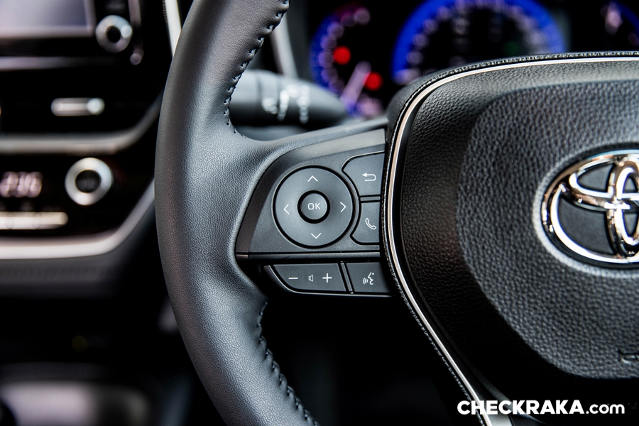 พวงมาลัยมัลติฟังก์ชั่น พร้อมปุ่มควบคุมเครื่องเสียง ปุ่มตั้งระบบครุซคอนโทรล ขาดเพียงแค่ Paddle Shift มีเฉพาะ GR-Sport และ Head-up Display ที่จะมีอยู่รุ่น 1.8 GR-Sport และ Hybrid Premium Safety
