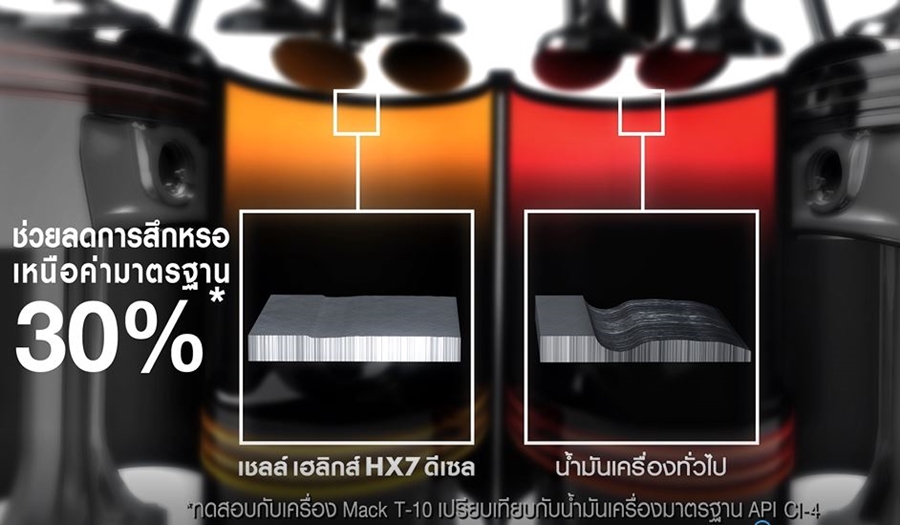 เพราะ Shell Helix HX7 ดีเซล มีสูตรให้เลือกครอบคลุมทุกการใช้งานรถดีเซล ไม่ว่าจะเป็นสายกระบะขับใช้งานทั่วไปในชีวิตประจำวัน หรือพาครอบครัวท่องเที่ยว ก็จะเหมาะกับ Shell Helix HX7 Diesel สูตร 10W-30 ส่วนกระบะสายลุยงานโหด ๆ วิ่งงานหนัก อย่างรถคอก รถส่งผัก ใช้กำลังในรอบสูงๆ บ่อย เช่น ขึ้น-ลงเขา ใช้รถวันละหลายกิโลเมตร บรรทุกของหนัก ต้องเจาะจง Shell Helix HX7 15W-40 สูตรใหม่ เพิ่มค่าความหนืดสูงกว่า ทำให้มีประสิทธิภาพในการทำงานได้ดีกว่าในสภาพเครื่องยนต์ที่ถูกใช้งานหนัก ๆ จนทำให้สึกหรอมากขึ้นกว่าปกติและมีความร้อนสูง เมื่อสึกหรอจากการเสียดสีมากก็ย่อมเกิดระยะห่างระหว่างชิ้นส่วนมากตามไปด้วย และเนื่องจากเหตุนี้เอง เจ้าค่าความหนืดนี้จะเป็นตัวช่วยกระสานช่องว่างที่เกิดจากการสึกหรอนี้ ให้แนบสนิททำให้กำลังอัดในกระบอกสูบดีขึ้น อัตราเร่ง ความแรงและประหยัดกลับมาอีกครั้ง เหมือนได้กลับมาเป็นรถใหม่อีกครั้ง