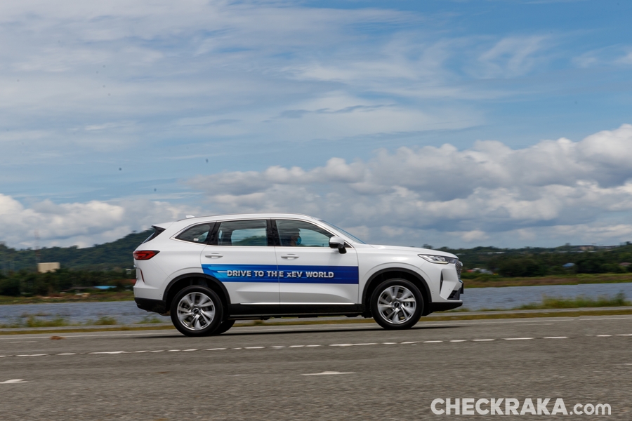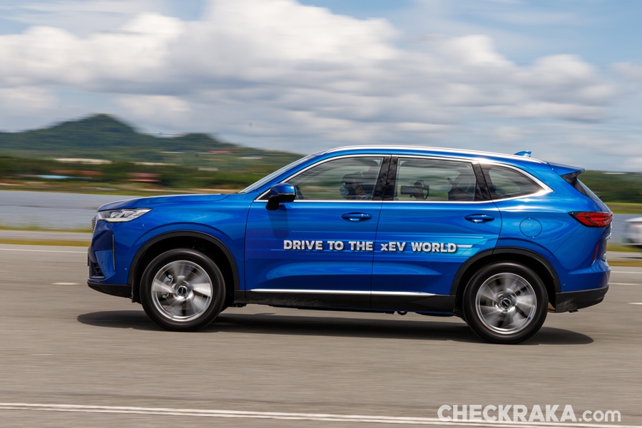 การทดสอบ HAVAL H6 Hybrid เริ่มกันจากโรงแรมอวานีย่านอ่อนนุช ผู้เขียนได้ขับรถหมายเลข 16 สีซิลเวอร์ เริ่มออกตัวกันราว 10.00 น. ขับไปตามถนนสุขุมวิทช่วงสั้นๆ ได้โอกาสทำความคุ้นเคยการขับของตัวรถไปสักพักก่อนหลีกหนีการจราจรที่วุ่นวาย จึงได้ลองเรื่องออกตัวและความคล่องตัว พบว่าตอบสนองได้ดีเยี่ยม ด้วยแรงบิดรวมสูงสุดถึง 530 นิวตันเมตรจากเครื่องยนต์เบนซินเทอร์โบ 1.5 ลิตร ไดเรคอินเจคชันผสานการทำงานกับมอเตอร์ไฟฟ้าให้แรงม้าสูงสุด 243 พีเอส ทำให้ออกได้อย่างฉับไว รู้สึกได้ถึงความกระฉับกระเฉง สามารถฉุดตัวถังขนาดใหญ่บนล้ออัลลอยขนาด 19 นิ้วในรุ่น ULTRA ได้อย่างสบาย ส่วนการใช้เบรกช่วงความเร็วต่ำก็ให้ความรู้สึกตอบกลับที่ดีให้น้ำหนักได้ง่าย มาถึงด้านจุดขึ้นทางด่วนบูรพาวิถีก็ได้จังหวะกดคันเร่งเต็มที่และต่อเนื่องมากขึ้น ขณะขับสายสายตามองแทบไม่ต้องละไปมองหน้าจอเล็กที่เป็นมาตรวัดความเร็ว เพราะมีระบบ HUD สะท้อนข้อมูลการขับขึ้นบนกระจกบานหน้า ช่วยให้มีสมาธิกับการขับมากขึ้น นอกจากนี้ผู้เขียนพยายามรักษาระดับความเร็วไม่ไห้เกิน 120 กม./ชม. ตามที่กฎหมายกำหนด อาจมีบ้างที่เผลอผ่านระดับความเร็วที่กำหนดไปบ้างอย่างไม่รู้ตัว ส่วนหนึ่งมาจากการทำงานผสานกันของเครื่องยนต์กับมอเตอร์ไฟฟ้าที่ทำได้ดีมากจริงๆ ส่วนการขับเปลี่ยนเลน นับว่าทำได้คล่องแคล่วเหมือนขับเอสยูวีขนาดเล็ก นอกจากนี้ยังได้สัมผัสกับระบบช่วยควบคุมรถให้อยู่ในเลน (LKA) ระบบช่วยเตือนเมื่อรถออกนอกเลน (LDW) ระบบช่วยรักษาระยะให้อยู่กลางเลน (LCK) รวมถึงระบบระบบเอนเตอร์เทนเม้นท์ต่างๆ ส่วนหน้าจอหลักสื่อสารง่ายด้วยภาษาไทย ช่วยให้ใช้งานง่ายและสะดวกมากขึ้น นอกจากนี้ยังได้ลองจับอาการตัวถังเวลาโดนลมข้างว่าลักษณะทรงตัวรถส่งผลมากน้อยแค่ไหน โดยรวมก็นับว่าไม่รู้สึกอะไรมากนัก อาจเป็นวันที่กระแสลมไม่แรงมากนัก หลังขับสิ้นสุดทางด่วน ก็ลงเข้าชลบุรีเลี้ยวไปถนนเลียบชายทะเลบนสะพานชลมารควิถี ผ่านเข้าพื้นที่ตัวเมืองยังรู้สึกได้ว่าเบาะนั่งสบายไม่มีอาการเมื่อยล้า