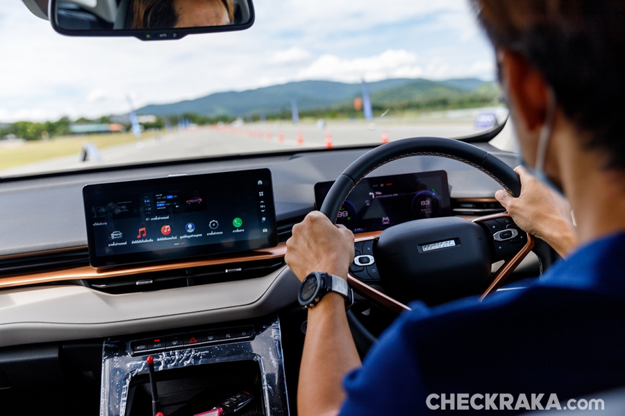 ทดสอบการใช้งานกล้องติดรถยนต์ ADAS ที่ประสานกับชิปควบคุมการขับเคลื่อนอัตโนมัติ Q4 ของโมบายอาย (EYEQ4) ช่วยควบคุมในช่วงความเร็วให้อยู่ในค่าที่ตั้งไว้ รวมถึงการหยุดและรีสตาร์ทกลับไปยังความเร็วที่ตั้งไว้ก่อนหน้า โดยรักษาระยะห่างกับรถคันข้างหน้าตามระยะใกล้-ไกลที่เราปรับตั้งไว้อยู่ตลอด ซึ่งระบบนี้อาจคุ้นเคยกันดีอยู่แล้วเพราะรถรุ่นใหม่ๆ มักมีฟังก์ชันนี้ให้ใช้กันมากขึ้น แต่ที่ชอบของใน HAVAL H6 Hybrid ก็คือ ครูซคอนโทรลทำเป็นก้านแยกออกมาจากพวงมาลัยปรับตั้งง่าย เพิ่มค่าความเร็วก็ง่ายเช่นกัน