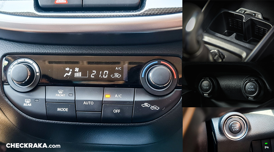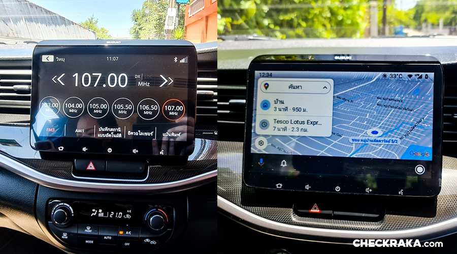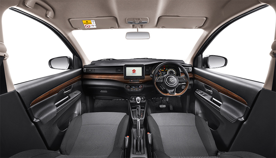 ในส่วนคอนโซล Suzuki XL7 ตกแต่งสไตล์สปอร์ตลาย Carbon Fiber พร้อมคิ้วโครเมียม สำหรับความ Entertain ก็มาพร้อมกับจอแบบสัมผัสขนาด 10 นิ้ว ใช้งานง่ายเพราะเป็นภาษาไทยตัวโต สามารถเชื่อมต่อสมาท์โฟน ผ่าน Bluetooth รองรับ Apple Car Play ของ iOS จะเชื่อมต่อง่ายอีกทั้งยังสามารถต่อ HDMI จากมือถือที่เป็น iOS เสียบสายเข้ากับจอภาพของรถเพราะเขามีช่องเสียบเอาไว้รองรับ ภาพจากมือถือก็จะไปปรากฎบอกจอของรถทันที Android Auto ก็มีแต่ผู้เขียนลองใช้งานดูจะหลุดบ่อยไปนิด ลำโพงภายในมีทั้งหมด 6 ตัว ฟังเพลงได้สบายๆ อีกทั้งพวงมาลัยเป็นมัลติฟังก์ชั่น กดรับสาย เลือกต่อบลูธูทก็ทำได้ ไม่ต้องละสายตาหากใครโทรเข้า