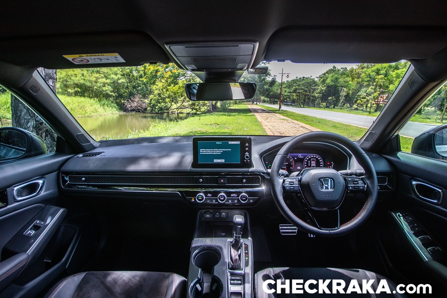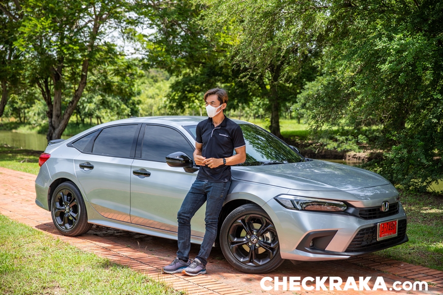 การขับทดสอบหลังผู้เขียนกับทีมงานฯ ผ่านการตรวจหาเชื้อไวรัสโควิดเรียบร้อย ก็รับรถไปทดสอบโดยมีเวลาขับและบันทึกภาพตั้งแต่ 9.00 - 16.00 น. หลังจากที่เคยพรีวิวทำความคุ้นเคยกับตัวรถไปวันเปิดตัว คร้้งนี้ยังได้รุ่นทดสอบเป็น RS ที่จัดเต็มทุกสิ่งอย่างทั้งฟีเจอร์และของเติมแต่ง ทำให้คุ้นมืออยู่ ลำดับแรกก่อนขับเดินทางได้ปรับท่านั่งพร้อมเชื่อมต่อสมาร์ทโฟนเข้ากับหน้าจอระบบเครื่องเสียงหน้าจอสัมผัสขนาด 9 นิ้ว ก็เชื่อมได้เร็ว เล่นเพลงผ่านแอพฯ อย่าง Spotify ฟังเพลินๆ พร้อมรับสายได้โทรเข้าได้ตลอด เส้นทางแรกที่ใช้คือ ถนนกาญจนาภิเษกมุ่งหน้าบางปะอิน เป็นการขับยาวใช้ความเร็วได้ต่อเนื่อง เพื่อมีสมาธิในการจับอาการต่างๆ ได้ง่ายขึ้น ข้อสังเกตุแรกเสียงรบกวนเข้าห้องโดยสารจัดว่าทำได้ดี ยางที่ให้ขนาด 17 นิ้วก็เป็นรุ่นเน้นลดเสียงรบกวนด้วย มีแค่เสียงตอนเร่งเครื่องยนต์เพื่อเร่งแซงกระตุ้นความรู้สึกมาหน่อย ยิ่งถ้าปรับเป็นโหมดสปอร์ตก็จะยิ่งชัดเจนขึ้น การขับทางตรงยาวๆ ช่วงล่างให้ความนุ่มนวลในระดับพอดีกับการใช้ปกติทั่วไป รวมถึงคนส่วนใหญ่ มีแต่ผู้เขียนที่อยากให้หนึบแน่นมากกว่านี้หน่อย มุมมองด้านหน้านับว่ากว้างและชัดเจนจากการออกแบบคอนโซลที่วางตัวในระดับต่ำ เสาเอก็ทำไม่ใหญ่และทำมุมกำลังดี ผู้เขียนขับแบบเสมือนการเดินทางไกลจริง พยายามทำความเร็วให้อยู่ระหว่าง 100-110 กม./ชม. ซึ่งค่อนข้างลำบากพอสมควรบนทางเปิดโล่งแบบนี้ ด้วยขุมพลังวีเทคเทอร์โบและการตอบสนองของแป้นคันเร่งนั้น ชวนให้กดไหลผ่าน 120 กม./ชม. ไปแบบไม่รู้ตัว ทำให้ต้องหันไปใช้ระบบควบคุมความเร็วอัตโนมัติแปรผัน ระหว่างทางได้ลองเล่นหน้าจอสัมผัส รวมทั้งหน้าจอข้อมูลก็พบว่าขนาดที่ใหญ่ช่วยให้เห็นง่ายและชัดเจน โดยเฉพาะผู้เขียนที่สายตายาวอยู่บ้าง อย่างไรก็ตามถ้าได้ปุ่มสั่งงานบางส่วนแยกมาไว้ตรงคอนโซลกลาง หรือทำเป็นปุ่มหมุนคอนโทรลเลอร์เมนูหน้าจอก็น่าจะช่วยให้สะดวกกว่านี้เพราะตำแหน่งท้าวแขนที่ให้มากำลังสบายลงตัว ถ้าได้คอนโทรลเลอร์ตรงกลางโดยไม่ต้องเอื้อมมือไปแตะหน้าจอก็จะดีมาก ส่วนการสั่งงานด้วยเสียงจากการกดเลือกที่พวงมาลัยก็ช่วยได้ในระดับหนึ่ง มักเป็นการสั่งโทรออกมากกว่า สุดทางตรงผู้เขียนตัดเข้าไปทางเส้นเข้าปทุมธานีเพื่อเลี่ยงไปวิ่งเข้าอยุธยาผ่านถนนหมายเลข 347 แวะวิ่งรอบคูเมืองเพื่อบันทึกภาพและพักรับประทานอาหารกลางวันแบบเปิดท้ายรถก็ใช้อาศัยนั่งได้สบาย การเปิดท้ายรถของซีวิคใหม่ปุ่มเปิดท้ายย้ายมาวางไว้ที่แผงข้างประตูคนขับนับเป็นความสะดวก