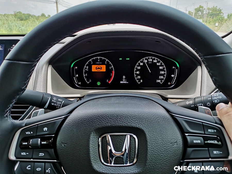 จากการทดสอบระบบ Honda Sensing เริ่มที่ช่วยควบคุมรถให้อยู่ในช่องทางเดินรถ - LKAS ช่วยเลี้ยงพวงมาลัยหรือควบคุมทิศทางของรถให้อยู่ในช่องทางได้อย่างนุ่มนวล และนับเป็นรถที่มีระบบ ไประคอง" พวงมาลัยนุ่มนวลมาก โดยกล้องด้านหน้าจะทำการตรวจจับเส้นแบ่งช่องทางเดินรถ และจะช่วยเพิ่มแรงหน่วงของพวงมาลัย พร้อมกับบังคับรถในอยู่กึ่งกลางเลน และบังคับตามถนนแม้จะเลี้ยวโค้ง