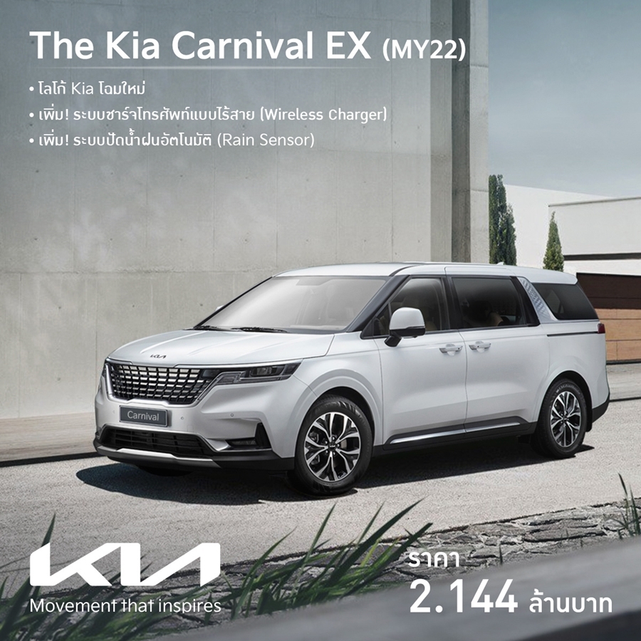 Kia Carnival EX ราคา 2,144,000 บาท รุ่นสุดคุ้มค่าเหมาะกับผู้ต้องการความสะดวกสบายเพิ่มขึ้นได้แก่