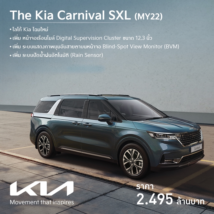 Kia Carnival SXL ราคา 2,495,000 บาท เพิ่มระบบความปลอดภัยและฟังก์ชั่นที่โดดเด่นยิ่งขึ้น