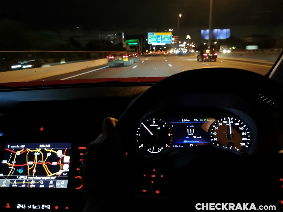 นิสสัน นาวารา PRO2X ด้านการใช้งานผู้เขียนได้นำมาขับเสมือนการใช้งานจริง 3 วันและบันทึกภาพนิ่งและคลิปอีกวัน การขับใช้งานมีทั้งในเมืองและเดินทางไกล ตลอดจนกลางวันและกลางคืน เพื่อให้ครอบคลุมใกล้เคียงความเป็นจริงของการใช้รถแบบครอบครัว จากข้อมูลเบื้องต้น นิสสัน นาวารา PRO2X รุ่นที่นำมาทดสอบยังคงใช้ขุมพลังเครื่องยนต์ดีเซลทวินเทอร์โบ YS23DDTT ความจุ 2.3 ลิตร เกียร์อัตโนมัติ 7 สปีด พร้อมโหมดแมนนวล ให้กำลังสูงสุด 190 แรงม้า แรงบิดสูงสุด 450 นิวตันเมตร มั่นใจได้ว่าเพียงพอต่อการใช้งานทางไกล ที่มักต้องมีการใช้อัตราเร่งแซง รวมไปถึงการใช้แรงบิดที่ดีในการขับขึ้นทางลาดชันแม้ว่าตัวรถมีโหลดเยอะ สัมผัสแรงหลังเข้าไปนั่งปรับระยะเบาะให้เข้ากับสรีระผู้เขียนที่สูง 171 ซม. รู้สึกได้ถึงความโปร่งและหรูหรา งานประกอบที่ดี เกรดของวัสดุชิ้นงานภายในให้อารมณ์เหมือนรถซีดานพรีเมียม ไม่เหมือนนั่งอยู่ภายในรถกระบะ ก่อนขับก็ได้ลองระบบการเชื่อมต่อบลทูธกับสมาร์ทโฟนผ่าน NissanConnect สแตนบายด์การรับ-วางสายโทรเข้า และพลาดไม่ได้กับฟังชันที่เชื่อมต่อกับ Apple CarPlay และ Android Auto ซึ่งสมาร์ทโฟนของผู้เขียนเป็นแบบแอนดรอยด์ พอใช้สายเชื่อมต่อผ่านพอร์ท USB ก็ใช้งานได้หลากหลายขึ้นไปอีกเพราะสามารถดึงแอปพลิเคชันของโทรศัพท์ออกมาใช้บนหน้าจอสัมผัสขนาด 8 นิ้วได้ เช่น ระบบนำทาง (Navigation system) กูเกิ้ลแมพ อันนี้เป็นแอปฯ จำเป็นของคนใช้รถจริงๆ นอกจากนี้ก็เปิดแอปฯ Spotfy เล่นชุดเพลงโปรดที่บันทึกไว้ เสียงที่ขับออกมาจากลำโพงติดรถนับว่าดีพอสำหรับผู้ใช้งานทั่วไปเลย สรุปความรู้สึกที่เข้ามานั่งแล้วได้ลองเล่น ทำความคุ้นเคยกับฟังก์ชัน หน้าจอ และปุ่มปรับต่างๆ รู้สึกพอใจที่สุดเพราะใช้งานง่าย มีทุกสิ่งอำนวยความสะดวกให้ครบครัน