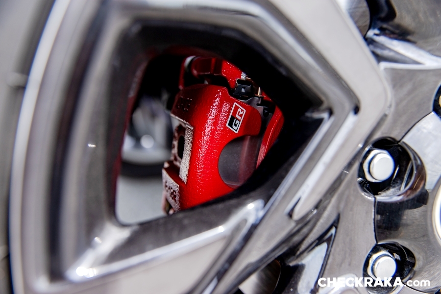 -พวงมาลัยหุ้มหนังแบบ Soft Touch แบบเจาะรู พร้อมตกแต่ง Center mark สีแดง และเดินด้ายสีแดง/ สี Smoke silver และสัญลักษณ์ GR