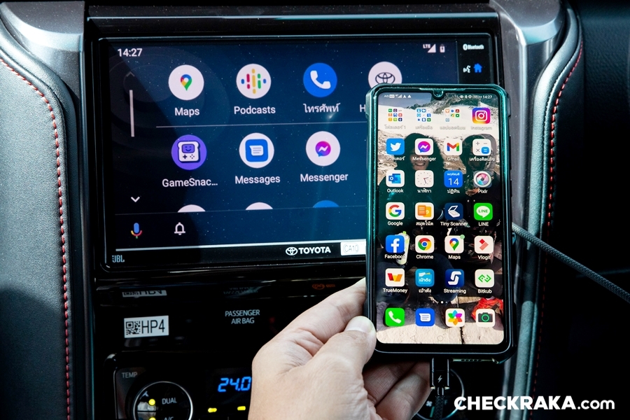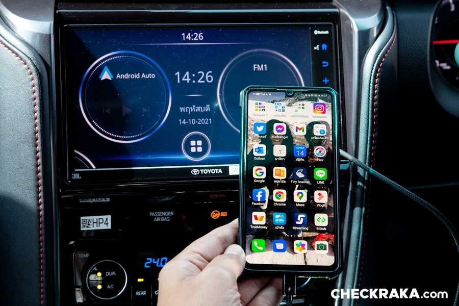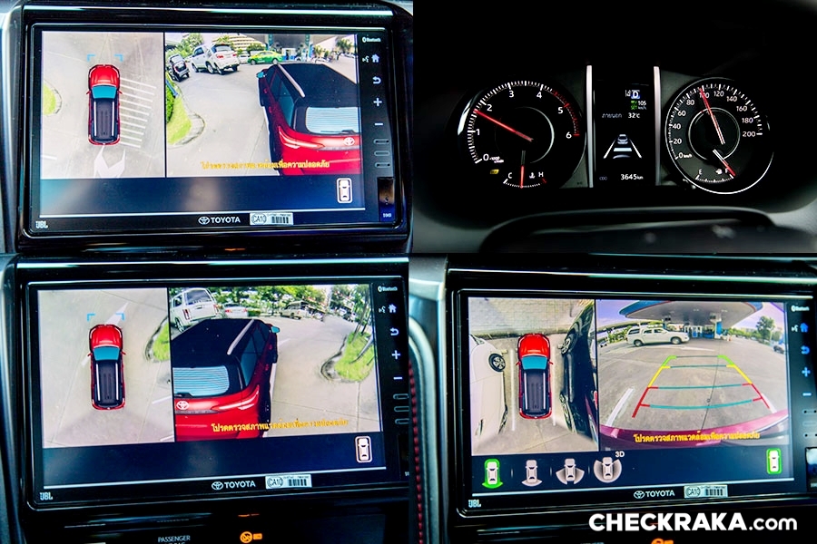 นอกจากนี้ก็เปลี่ยนมาใช้ช่อง USB แบบ Type C 2 แต่คนที่มีสายรุ่นเก่าแบบเดิม (เช่นผู้ทดสอบ) ก็ไม่ต้องเสียใจสามารถใช้งานช่อง USB บนหน้าจอวิทยุได้อยู่ครับ แบบจอสัมผัสขนาด 9 นิ้ว รองรับ Bluetooth/USB พร้อมลำโพง JBL 11 ลำโพง (รวม Sub-Woofer ที่ประตูท้าย) สามารถเชื่อมต่อ Apple CarPlay/Android Auto ได้ง่ายมาก มีข้อแม้ว่ารถต้องจอดสนิทและใส่เกียร์ "P" ก่อนเพื่อความปลอดภัยนะครับ และก็มีกล้องรอบคัน 360 องศา ที่มีมุมมองให้เลือกดูได้และยังมีมุมกล้องด้านข้างเมื่อเราเปิดไฟเลี้ยวอีกด้วยครับ