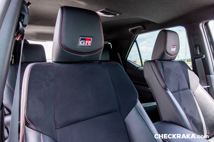 -ภายในดีไซน์สปอร์ตโทนสีดำสลับแดง ให้ความรู้สึกแบบรถแข่ง คงไว้ซึ่งความหรูหราไว้อย่างลงตัวเบาะนั่ง Suede แบบเจาะรู และหนังสังเคราะห์เดินด้ายตกแต่งสีแดง พร้อมสัญลักษณ์ GR แผงคอนโซลหน้าตกแต่งด้วยแถบสี Smoke silver พร้อมบุหนังสังเคราะห์สีดำเดินด้ายแดง