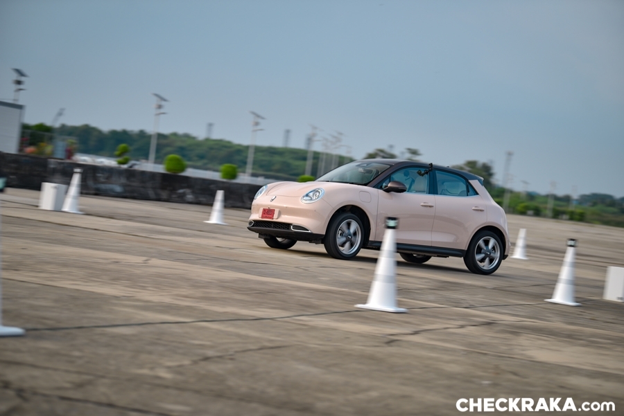 อัตราเร่งแซงนั้นก็มาเร็วแบบไม่รอรอบและพุ่งไต่ระดับอย่างเร้าใจ ทั้งการเร่งในช่วงความเร็ว 60 - 100 กม./ชม. หรือ 100 กม./ชม. ขึ้นไปยาว ๆ ก็ใช้เวลาสั้น ๆ เท่านั้น ประกอบกับช่วงล่างที่หนึบเกินคาด จากที่เคยทดสอบรถยนต์ไฟฟ้าหลายรุ่นนั้น ช่วงล่างจะออกไปทางนิ่มและยวบเพราะน้ำหนักแบตฯ และระบบไฟฟ้า แต่เจ้าแมวเหมียวรุ่นนี้กลับทำน้ำหนักตัวได้เบาและบาลานซ์ระดับหนึ่งจากเพลตฟอร์ม "GWM LEMON E PLATFORM" สร้างมาสำหรับใช้งานกับรถไฟฟ้า (BEV) โดยเฉพาะ
