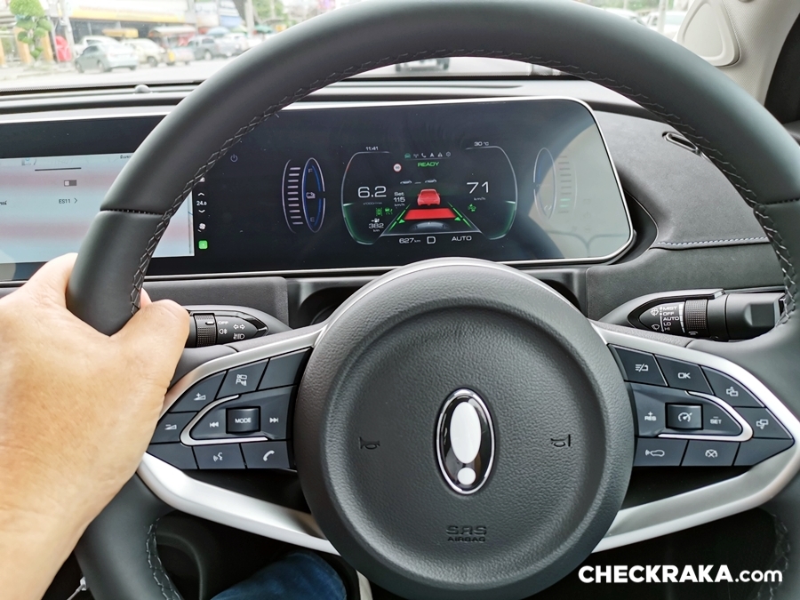 สำหรับ 400 PRO ในรุ่นที่ทดสอบนั้นไม่มีระบบนวดและ Welcome Seat หรือเบาะเลื่อนเข้า-ออก ตอนขึ้นลงรถ ส่วนระบบความปลอดภัยยังไม่มีระบบเตือนมุมอับสายตา ระบบเตือนพร้อมช่วยเบรกขณะถอยหลัง ระบบจอดอัตโนมัติ เซนเซอร์หน้ารถ ระบบเตือนเมื่อเสี่ยงการชนด้านหลัง ซึ่งผมมองว่ารับได้ครับ เพราะยังให้ระบบเตือนการชนด้านหน้าที่ขยันมากเมื่อขับจี้ท้ายคันหน้า ระบบควบคุมความเร็วแปรผันตั้งแต่ความเร็วสูงสุดที่ 120 กม./ชม. และสามารถลดความเร็วลงมาจนถึงจุดหยุดนิ่งได้ และเมื่อรถยนต์คันหน้าเคลื่อนตัวหลังจากเบรกภายใน 3 วินาที รถยนต์จะเคลื่อนตัวตามคันข้างหน้าอัตโนมัติ พร้อมเว้นระยะห่างที่เหมาะสม แถมด้วยระบบเตือนออกนอกเลนพร้อมดึงกลับและระบบควบคุมทิศทางให้รถอยู่กลางเลน แค่นี้พอไหมสำหรับ 400 PRO ที่ราคาน่าจะไม่ทะลุล้านบาท เรียกว่าแทบจะไม่ได้ขับเองแล้วละครับ
