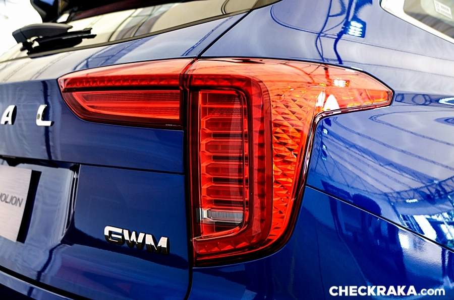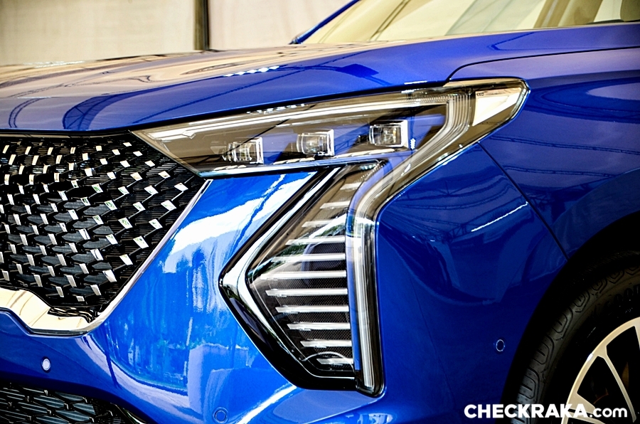และไฟท้าย LED พร้อมไฟเบรกดวงที่สามและไฟตัดหมอกหลังแบบ LED ด้านหน้าของรถเป็นกระจังหน้า Star Matrix สีดำ-เทา ที่โดดเด่นด้วยโลโก้ HAVAL ตรงกลาง