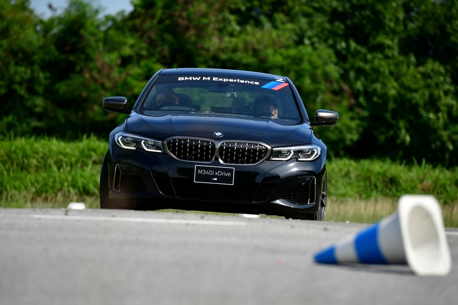 การขับ M340i xDrive ในแทร็คของสนามแก่งกระจาน ช่วงแรกเป็นการขับวอร์มอัพแล็บเล็กเพื่อทำความคุ้นเคยกับตัวรถโดยรวมทั้งการให้น้ำหนักคันเร่ง เบรก บังคับเลี้ยว ผ่านโหมดต่างๆ เช่น Comfort กับ Sport ทีมผู้ฝึกสอนได้แนะนำเทคนิคที่เป็นประโยชน์มากมายโดยเฉพาะการให้น้ำหนักคันเร่งกับรถที่มีระบบ xDrive การลองในช่วงสั้นๆ พอทำความคุ้นเคยกับ M340i xDrive ที่คงความสบายของรถใช้งานในชีวิตประจำวันได้อย่างครบถ้วน แต่การออกตัวด้วยพลังเครื่องยนต์ระดับ 387 แรงม้า แบบจมเท้านั้นทำให้เห็นถึงสมรรถนะที่พร้อมปลุกจิตวิญญานนักแข่งในสนามขึ้นมาได้ทันที เครื่องยนต์ขนาด 3.0 ลิตร เทคโนโลยี BMW TwinPower Turbo ให้การตอบสนองที่ยอดเยี่ยม การส่งกำลังผ่านเกียร์อัตโนมัติ Steptronic แบบสปอร์ต 8 จังหวะให้ความต่อเนื่องและไหลลื่น เมื่อถึงจุดเบรก ระบบเบรกและช่วงล่างจาก M ทำงานผสานกันช่วยหน่วงชะลอลงได้่อย่างมั่นใจทุกครั้ง ทำให้การมาร์คจุดและบังคับเลี้ยวเข้าโค้งทำได้ง่ายไม่เครียด การเดินคันเร่งออกจากโค้งก็ดี แม้ช่วงที่ผ่านทางน้ำไหลที่มาจากเขาผ่านผิวแทร็ค ทำให้ล้อหลังมีอาการสไลด์บ้าง แต่ก็สามารถแก้อาการคืนได้อย่างรวดเร็ว ในรอบฟูลแล็บนับเป็นช่วงที่ได้เพลิดเพลินกับตัวรถเต็มที่ เสียดายที่ใช้แทร็คไม่ได้ทั้งหมด 100% แต่ก็สนุกกับสมรรถนะของรถได้พอสมควร สัมผัสได้ถึงอัตราเร่งที่ยอดเยี่ยม ระบบเบรกที่ทรงพลัง การเข้าโค้งความเร็วที่ให้การควบคุมดีเยี่ยม โดยเฉพาะในแทร็คของสนามภูเขาแบบนี้ที่ขับไม่ง่ายเพราะมักเป็นทางขึ้นลง ลอน และโค้งลับตา สรุปโดยรวมกับการลองขับบนแทร็คช่วงสั้นๆ แต่ก็มากกว่า 5 รอบ นับว่า บีเอ็มดับเบิลยู M340i xDrive เป็นรถที่ดูดีทั้งภายนอก-ใน และมีสมรรถนะสมศักดิ์ศรีรหัส M แต่มีราคาต่ำกว่า 4 ล้านบาท น่าจะเป็นรถคู่ใจของใครหลายคนที่มองหาซีดานพรีเมียม แต่เปี่ยมไปด้วยสมรรถนะเร้าใจในราคาที่สมเหตุผล