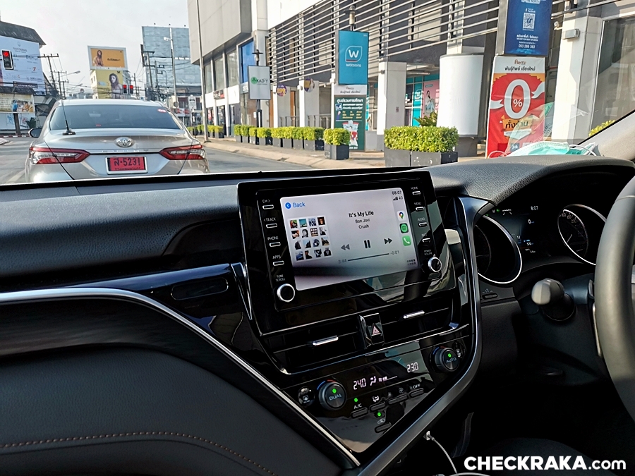 ระบบเครื่องเสียงหากเทียบกับรถระดับเดียวกันถือว่าอยู่ใรระดับกลาง ๆ พอฟังได้ สีพื้นของหน้าจอสัมผัส 8 นิ้ว ดูจืด ๆ ไม่หวือหวานัก รองรับ Apple CarPlay และ Android Auto ได้ พร้อม Wireless charger ลำโพง 6 ตำแหน่ง และแสดงภาพขณะถอยหลังได้ ระบบแอร์อัตโนมัติแยกปรับอุณหภูมซ้ายขวาที่เย็นจัดแม้จะปรับไปที่ 25 องศาก็ยังหนาวเลยครับ
