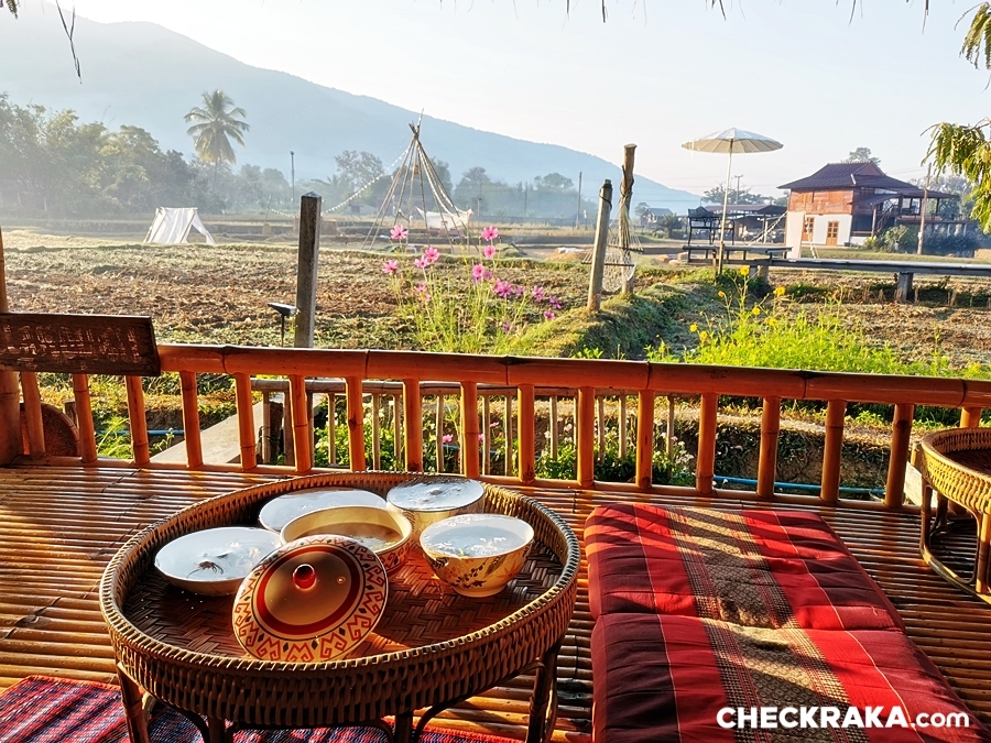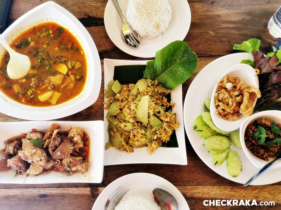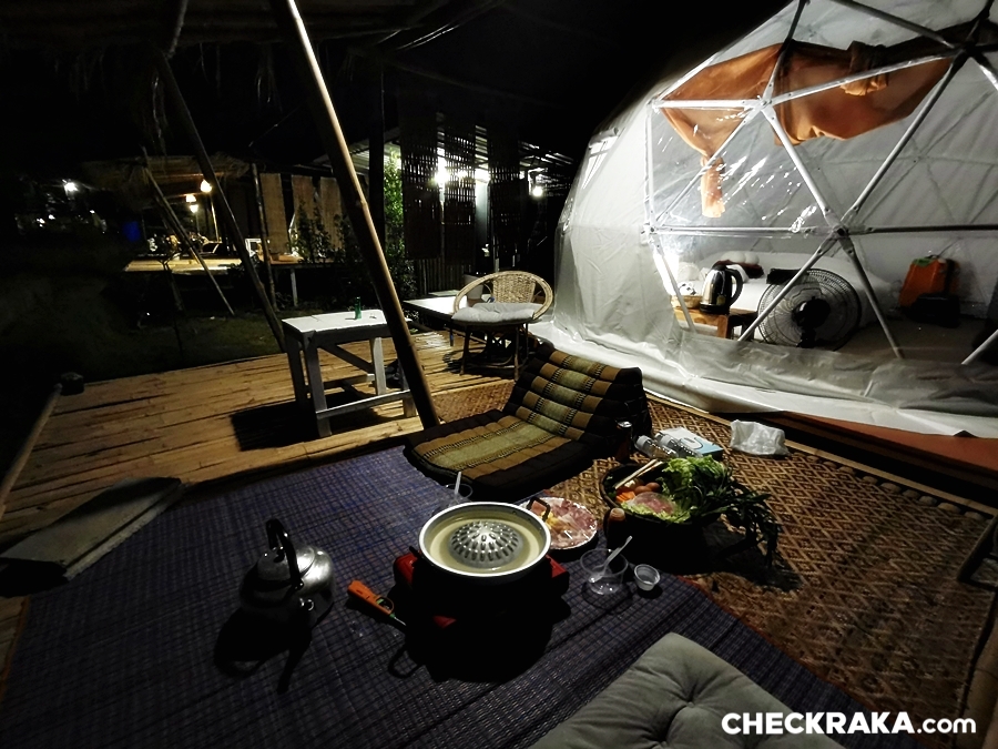 วันนี้สามนี้เริ่มเหนื่อยล้าจึงไม่ได้เดินทางไปไหนต่อเพราะเวลาใกล้ค่ำแล้ว จึงสั่งอาหารชุดมาทานหน้ากระท่อมในราคา 300 บาท ได้ครบ ๆ ทั้งอิ่มและอร่อยเลยครับ ส่วนตอนเช้าจะมีพนักงานมาเสิร์ฟอาหารถึงหน้ากระท่อมด้วยชุดข้าวต้มและกับข้าวอย่างดีและรสชาติอร่อยอีกด้วยครับ