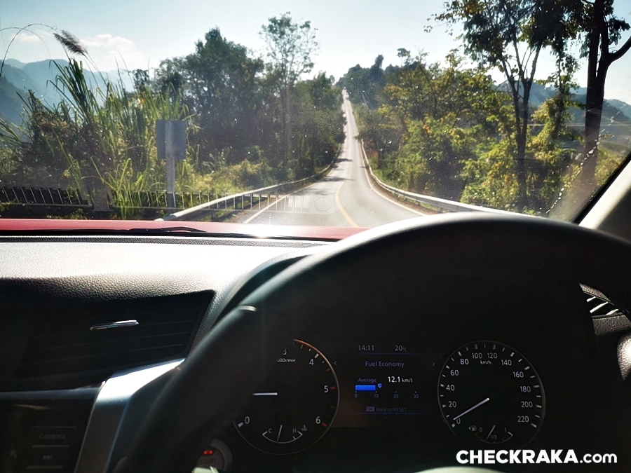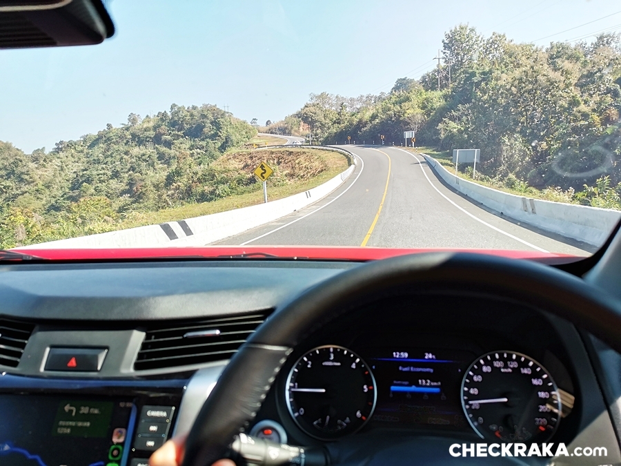 ในตอนแรกยอมรับว่าหวั่นใจ แต่พอขับด้วยเกียร์ 4L ไปเรื่อย ๆ ด้วยกำลังที่มหาศาลขึ้นเครื่องยนต์ดีเซล 2.3 ลิตร ทวินเทอร์โบ 190 แรงม้า แรงบิด 450 นิวตันเมตร เพียงแค่เติมคันเร่งเบา ๆ ก็ไหลขึ้นอย่างชิว ๆ อีกแล้วครับ การได้รถที่ช่วงล่างดี ๆ และเครื่องยนต์ที่มีกำลังดีย่อมช่วยในการขับผ่านเส้นทางโหด ๆ ได้ง่ายขึ้นเยอะเลยครับ