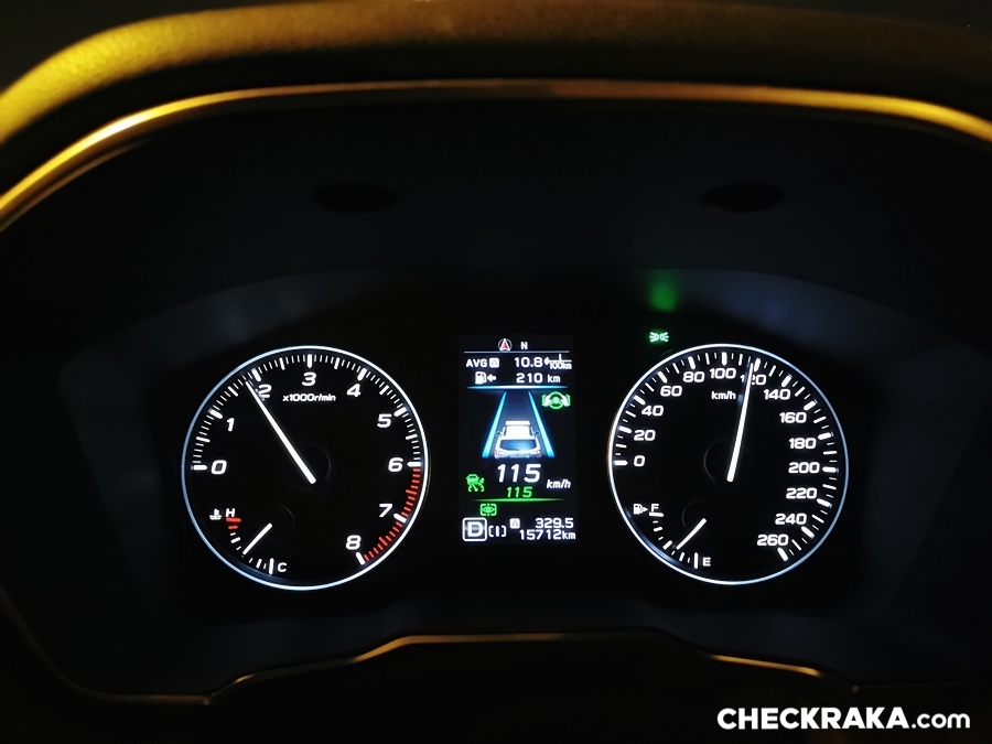 ต่อมาเมื่อขับไปถ้าเกิดว่าผู้ขับหันหน้าไปด้านอื่นที่ไม่ใช่มองตรงถนน ก็จะมีเซ็นเซอร์ตรงตรวจจับและเตือนโปรดระวัง และในจอกลางบนมาตรวัดก็จะมีรูปรถกับเลนในกรณีเปิดระบบเตือนออกนอกเลนเอาไว้พร้อมกับแจ้งป้ายเตือนความเร็วบนถนนอีกด้วย และที่เจ๋งสุดสำหรับสายออกทริปกับระบบเตือนกลองตรวจจับบนถนนที่จะส่งเสียงดังมาก และถ้าเปิดหน้าจอกลางให้เป็นเนวิเกเตอร์ก็จะเห็นระยะที่ตั้งกลองว่าอยู่ตรงไหนอีกด้วยครับ
