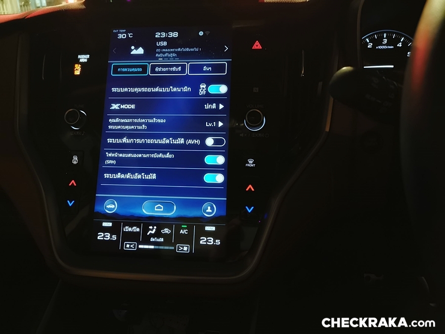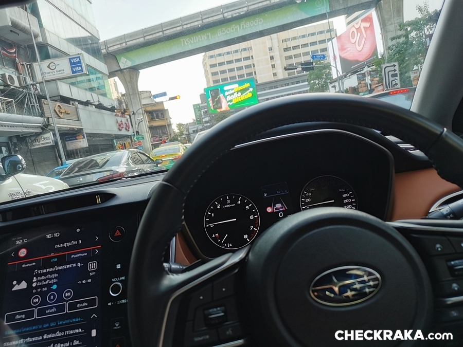 แน่นอนอีกครับว่า Outback เป็นรถที่เน้นใช้งานสะดวกสบายไม่เน้นซิ่ง แต่สามารถพาครอบไปได้ในทุกที่ทั้งทางเรียบ ทางฝุ่นและทางกึ่งออฟโร้ด ด้วยระบบขับเคลื่อน 4 ล้อ ระบบ X-MODE ไว้ลุย และใต้ท้องที่สูงมาก ทำให้ผ่านอุปสรรคได้สบายเลยครับ ส่วนตัวผมเองขอเน้นการใช้งานทั่วไปในเมืองเป็นหลักว่าให้ความสะดวกสบายและใช้งานระบบต่าง ๆ ได้แค่ไหน