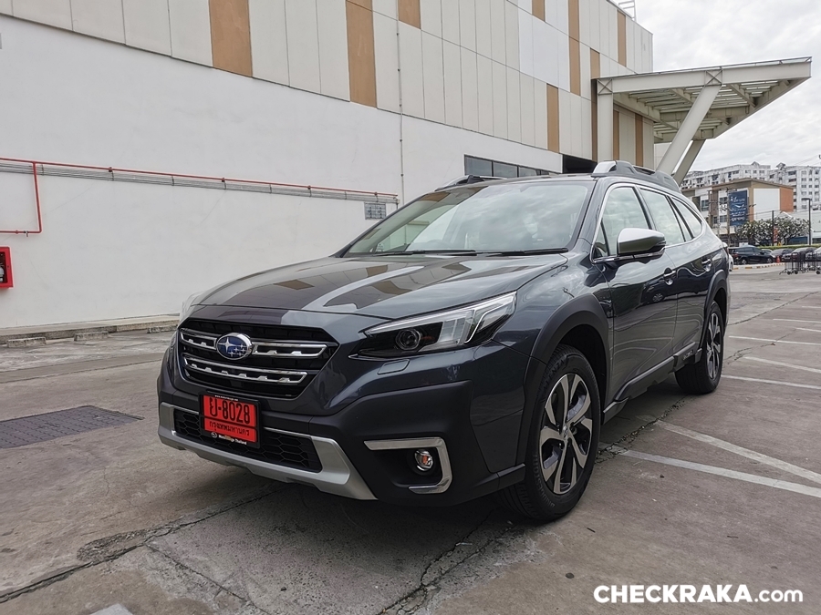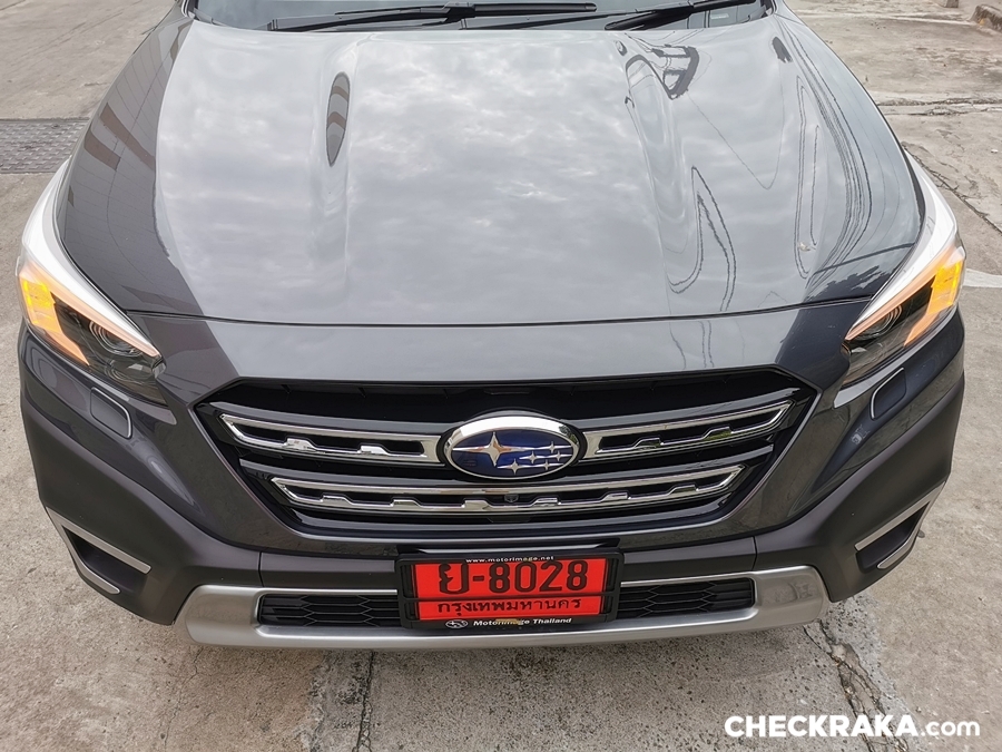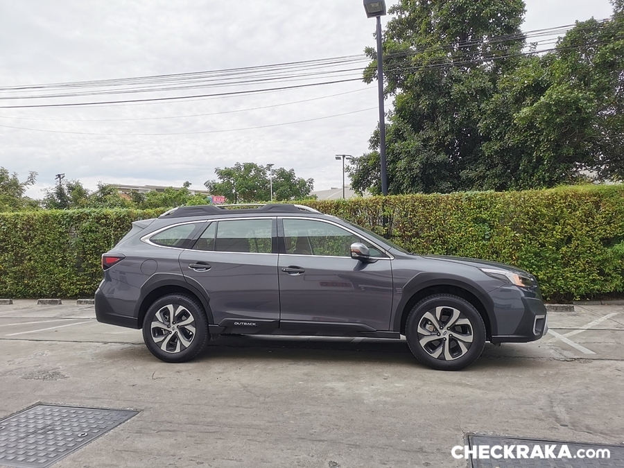 ภายนอกที่โดดเด่นคือ ไฟหน้าแบบ FULL-LED เปิด-ปิดอัตโนมัติและปรับองศาตามการเลี้ยวได้พร้อมระบบฉีดน้ำล้างโคมไฟอีกด้วย กันชนหน้าหลังขนาดใหญ่สีดำสลับเงิน หลังคาซันรูปพร้อมกับราวหลังคาขนาดใหญ่แข็งแรงปรับเลื่อนได้ตามต้องการ กระจกมองข้างขนาดใหญ่ พาร์ทตกแต่งรอบคันอลังการทั้งซุ้มล้อ แถบข้างประตูพร้อมสัญลักษณ์ OUTBACK และล้ออัลลอย 18 นิ้ว ยาง 225/60R18 จาก Bridgestone Alenza ยางที่นำเข้ามาพร้อมตัวรถทั้งคันจากญี่ปุ่น