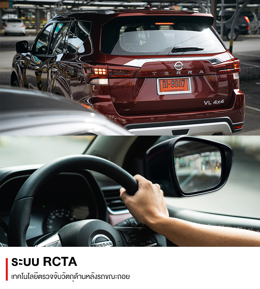 หรือเวลาที่ถอยรถออกจากช่องจอดตามลานจอด เรามักโดนรถด้านข้างบดบังหรือไม่มีโอกาสรู้ว่าขณะนั้นจะมีรถขับผ่านด้านท้ายหรือเปล่า ระบบตรวจจับวัตถุด้านหลังขณะถอย (RCTA) จะช่วยเตือนให้เรารู้ก่อน ซึ่งตัวช่วยนี้ดีมาก ๆ เลยครับ