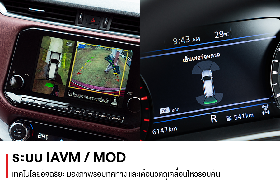 เวลาถอยก็มั่นใจมากขึ้นกับเทคโนโลยีกล้องอัจฉริยะมองภาพรอบทิศทาง (IAVM) ตรวจจับและส่งสัญญาณเตือนวัตถุ และบุคคลที่เคลื่อนไหวจากกล้องรอบคัน (MOD) ที่ช่วยให้ผมสามารถมองเห็นสภาพรอบตัวรถได้ทั่วทุกทิศ ด้วยการสร้างภาพมุมสูงแบบ Bird’s-eye view รอบตัวรถ ทำให้สามารถควบคุมตัวรถระหว่างถอยจอดรวมถึงเคลื่อนตัวไปข้างหน้าอย่างง่ายดาย