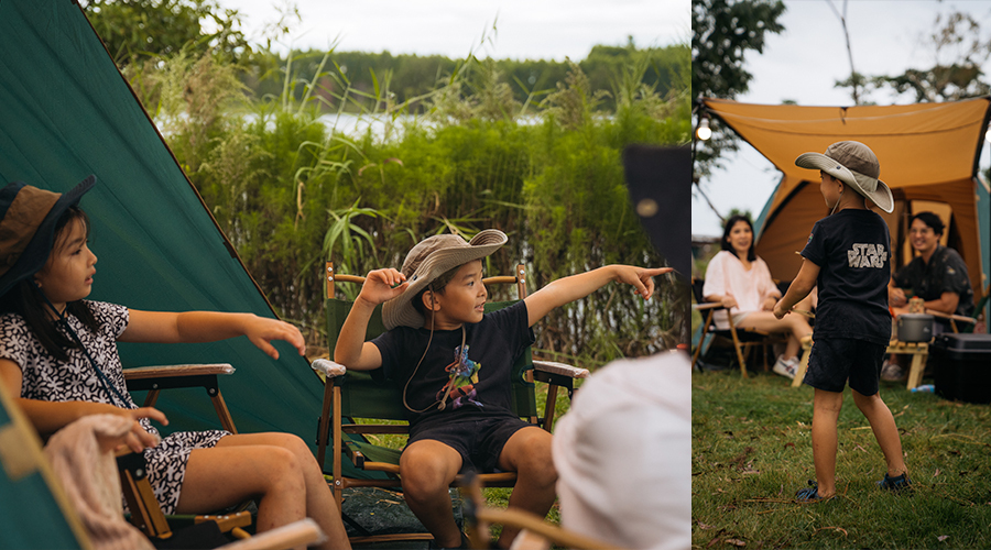 พอถึงที่หมายจุดที่ตั้งแคมป์ ทุกคนก็ช่วยขนสัมภาระออกมาปิกนิค เด็กๆ ได้วิ่งเล่นอิสระกับพื้นที่ธรรมชาติรอบตัว ส่วนผมกับภรรยาก็ใช้เวลานั่งปล่อยอารมณ์ ซึมซับบรรยากาศ ชื่นชมธรรมชาติ