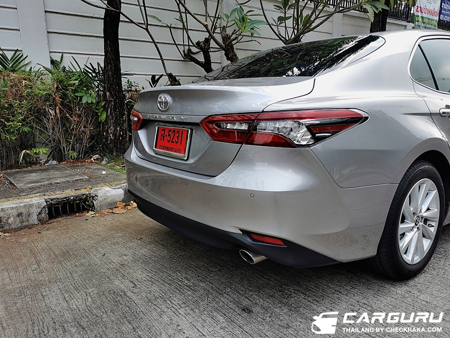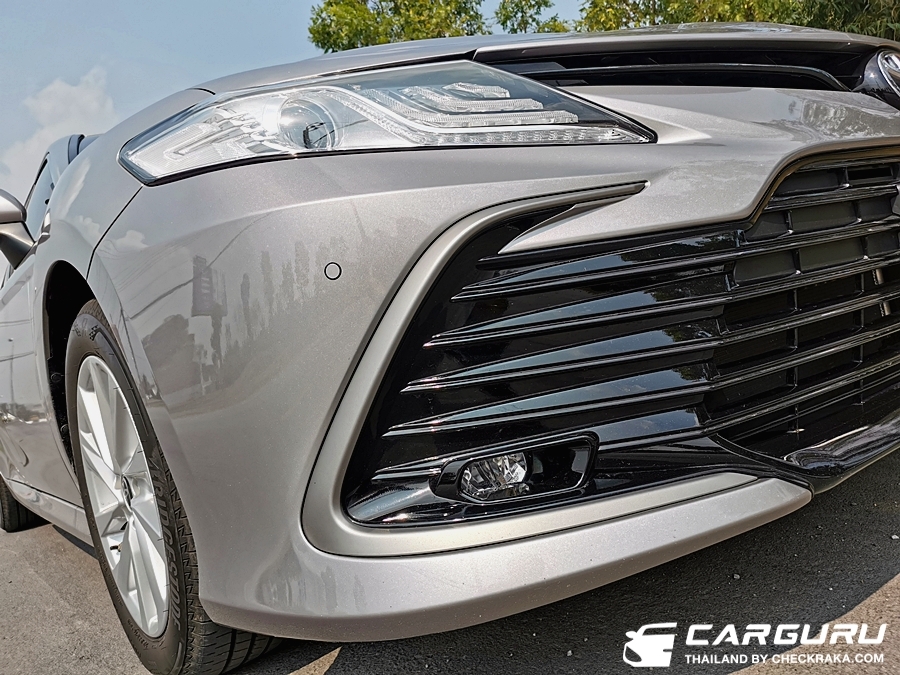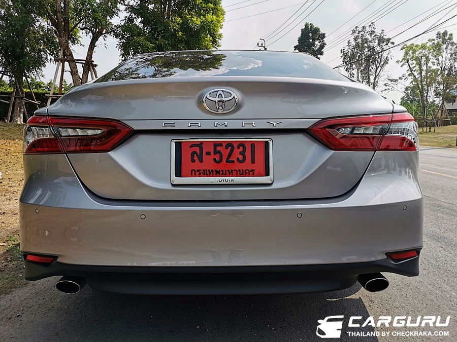 มาดูครับว่าใน Camry 2.5 Sport ตัวเริ่มต้นที่เพิ่มอีก 20,000 บาท จากรุ่นก่อนหน้า มีอะไรให้บ้าง เริ่มที่ภายนอกสังเหตุได้จากไฟหน้าลายใหม่ เส้น LED จะมี 3 แถบ กระจังหน้า กันชนหน้า ดีไซน์ใหม่ แต่ไฟตัดหมอกอยู่ตำแหน่งเดิม และไฟท้ายส่วนด้านข้างจะเป็นแถบสีแดงจากเดิมเป็นสีขาว (บางคนเรียกว่ารุ่นไฟแตก) ล้ออัลลอยขนาด 17 นิ้ว ลายเรียบง่าย ปลายท่อไอเสียแบบคู่ ออกสองฝั่ง นอกนั้นอาจจะดูคล้ายกับรุ่นเดิม