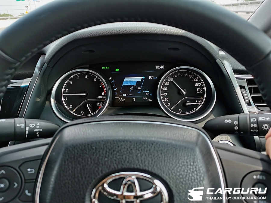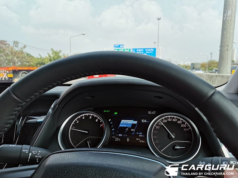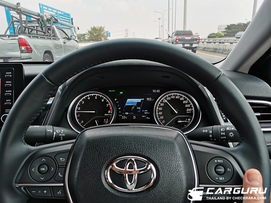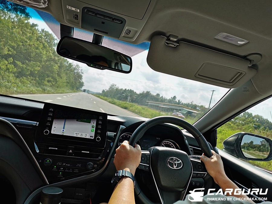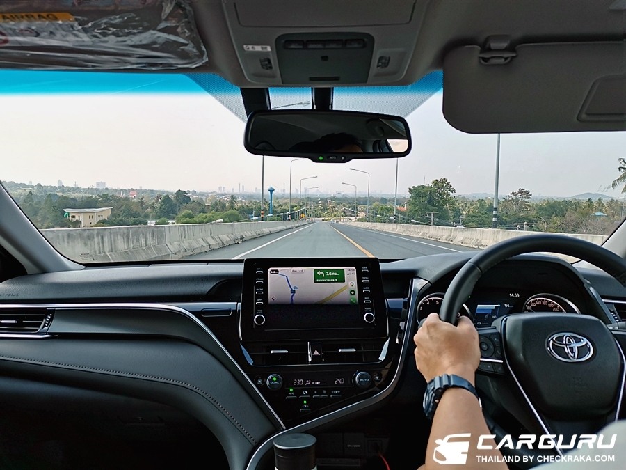 ส่วนเรื่องการเก็บเสียงกล้ายืนยันว่าเงียบจริง อาจจะเงียบกว่าคู่แข่งด้วยซ้ำไปครับ แม้จะขับที่ความเร็วสูง ๆ ระดับ 120+++ เสียงลม เสียงยางเสียงเครื่องรอดเข้ามาเบามาก ๆ และตัวรถนิ่งมีอาการโคลงน้อยมาก แม้จะขับบนบูรพาวิถี (บางนา) ที่ความเร็วสูง ลมปะทะก็ไม่สามารถทำให้คัมรี่เซแต่อย่างได้ครับ ยอมรับว่า TNGA เยี่ยมจริง ๆ