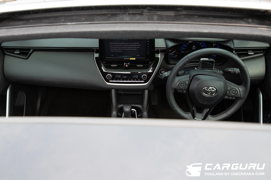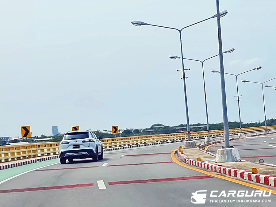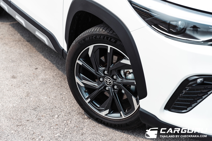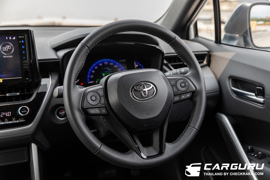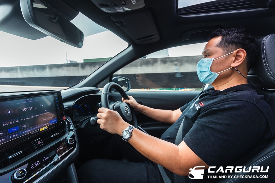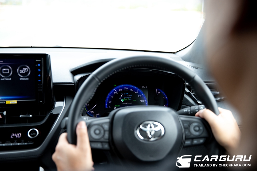 ระบบพวงมาลัยไฟฟ้าที่ได้ปรับจูนใหม่เช่นกันก็ให้ความแม่นยำมากขึ้น เวลาเลี้ยวโค้งใช้องศาการหมุนพวงมาลัยน้อยลง แต่รถเลี้ยวได้มากขึ้น น้ำหนักจะหนืด ๆ ขึ้นเล็กน้อยและกระชับตามมือ ไม่เจอระยะฟรีเท่าไหร่นัก สรุปโดยรวมแล้วการปรับปรุงช่วงล่างใน TOYOTA Corolla Cross HEV GR Sport ครั้งนี้ ดีขึ้นกว่าเดิม ๆ อย่างสัมผัสได้ครับ