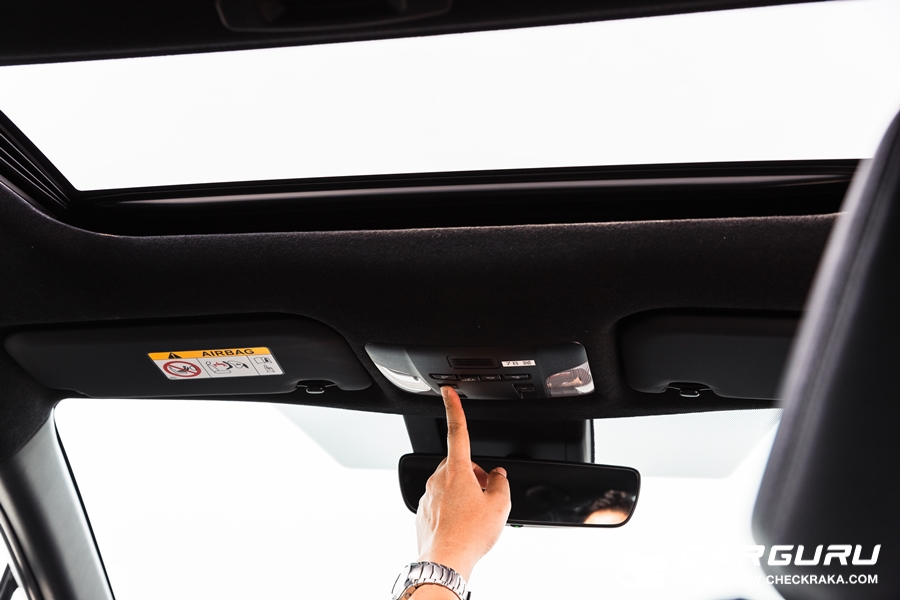 หลังคาซันรูฟไฟฟ้า ไฟส่องบริเวณเพดานตอนหน้าเป็นหลอดธรรมดา และไม่มีกล่องเก็บแว่นตา ส่วนประตูท้ายแบบไฟฟ้าพร้อมกับระบบแฮนด์ฟรี ใช้เท้ากวาด ซึ่งต้องบอกว่าในระบบเท้ากวาดในครอสคันนี้ทำงานไวมาก ๆ ใช้งานง่ายมากครับ เซ็นเซอร์จับการเคลื่อนไหวได้ดีจริง ๆ ครับ