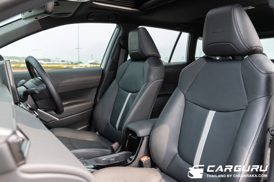 มาดูภายในตกแต่งโทนสีดำ คอนโซลหน้าแบบ Piano Black เบาะคู่หน้าทรงสปอร์ตเดินด้ายสีขาว และเส้นแถบขาวตรงพนักพิง พร้อมสัญลักษณ์ GR บนหัวหมอนศรีษะ เบาะแถวที่สองปรับเอนได้ 1 ระดับ และพับเก็บได้แบบ 60 : 40 ปุ่มสตาร์ทพร้อมสัญลักษณ์ GR พร้อมปูพื้นพร้อมสัญลักษณ์ GR