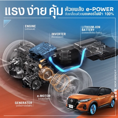ในตลาดโลก และญี่ปุ่น ที่จริง ๆ เค้าเป็นผู้นำด้าน EV อยู่แล้ว ยังเลือกที่จะพัฒนา เทคโนโลยี e-POWER ขึ้นมา เพื่อเป็น transition จากรถน้ำมันไปสู่รถ EV สำหรับผู้บริโภคที่ไม่สะดวกการรอชาร์จไฟจากสถานีชาร์จสาธารณะ ซึ่งเหมาะสมกับบ้านเราเป็นอย่างมาก ณ เวลานี้ แถมยังได้รับความนิยมมากว่า 10 ปีแล้ว มียอดขายสะสมกว่า 6 แสนคัน มีจุดเด่นในเรื่องความทนทาน บำรุงรรักษาง่าย โดยเฉพาะตัวแบตเตอรี่ไม่เคยเกิดเหตุการณ์ร้ายแรงใด ๆ แม้แต่ครั้งเดียว ตอบโจทย์ทุกการใช้งาน รวมจุดเด่นของมอเตอร์ไฟฟ้า ที่ให้ความแรงสุด ๆ ขับสนุก แรงบิดมาเต็มพลังตั้งแต่กดคันเร่ง แถมยังให้ความสะดวกสบายในการใช้งาน ไม่ต้องวางแผนการเดินทาง ไม่ต้องหาที่ชาร์จ ไม่ต้องปรับเปลี่ยนพฤติกรรมการใช้รถ และยังสามารถขับไปได้ไกลไม่จำกัด ตราบใดที่มีปั๊มน้ำมันให้เติม