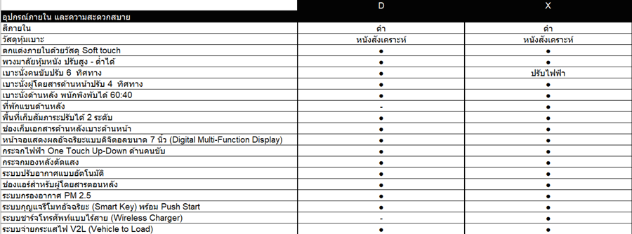 - เบาะนั่งคนขับปรับไฟฟ้า 6 ทิศทาง เบาะผู้โดยสารด้านหน้าปรับ 4 ทิศทาง