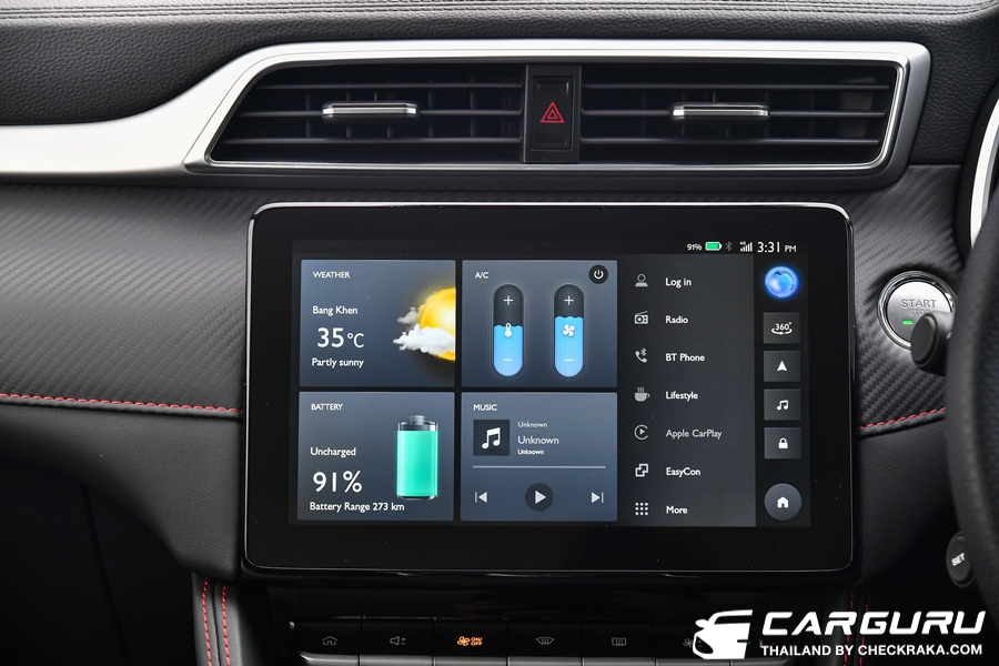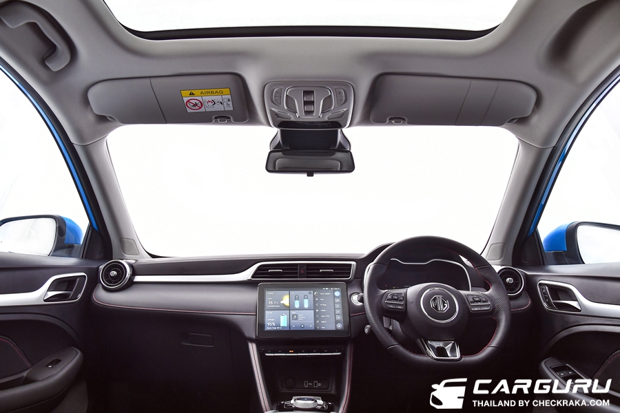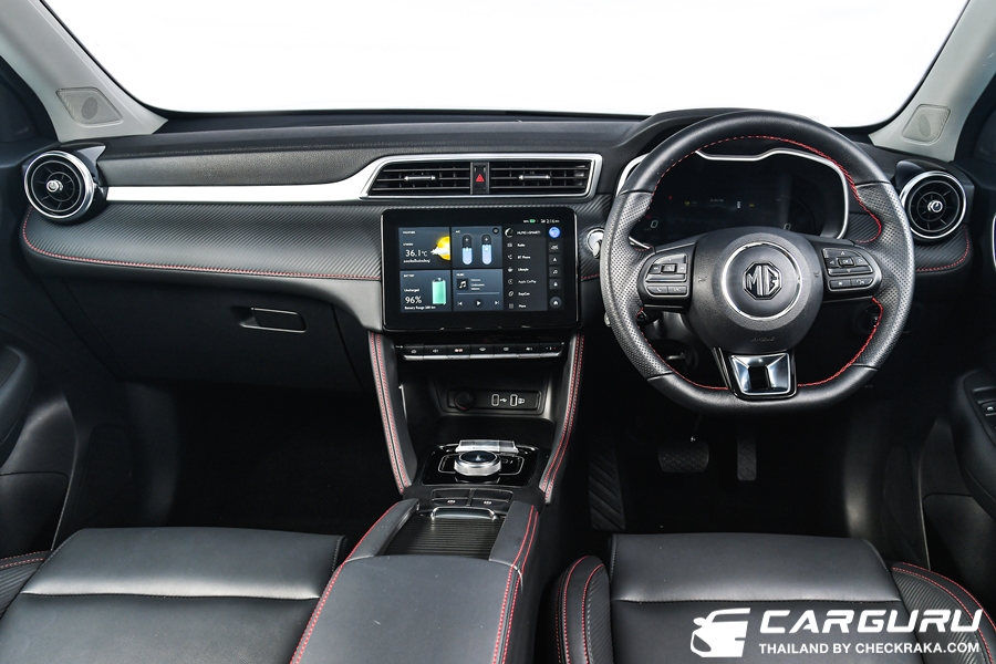 NEW MG ZS EV ได้รับการออกแบบให้มีพื้นที่ภายในกว้างขวาง มาพร้อมดีไซน์เรียบหรู แฝงความสปอร์ตพรีเมี่ยมด้วยคอนโซลหน้าลายคาร์บอนไฟเบอร์ และเบาะหนังดำเดินด้ายแดง พร้อมวัสดุบุนุ่มแบบ Soft Touch และฟังก์ชันการใช้งานที่ครบครัน