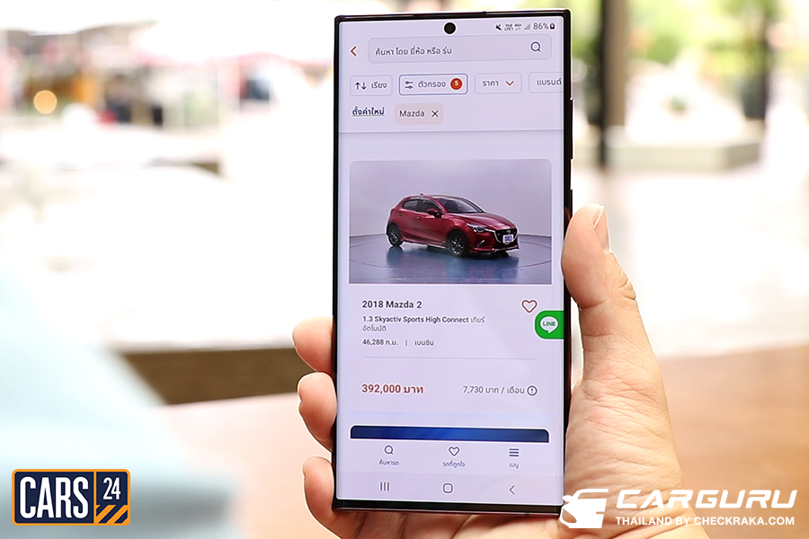 ในแอปพลิเคชั่น CARS24 ก็ใช้งานง่ายสะดวก ดูรถได้ทุกที่ตลอด 24 ชั่วโมง สามารถเลือกดูรุ่น ราคา หรือยี่ห้อ อย่างเช่นรถยนต์ราคา 400,000 บาท เมื่อกดเข้าไปก็มีให้เลือกกว่า 150 คัน และยังดูรูปคันจริงในแบบ 360 องศาได้ทั้งภายนอกและภายใน รวมถึงเครื่องยนต์ โดยมีรายละเอียดราคา เลขกิโลเมตร ระบุเอาไว้ชัดเจนทุกคัน