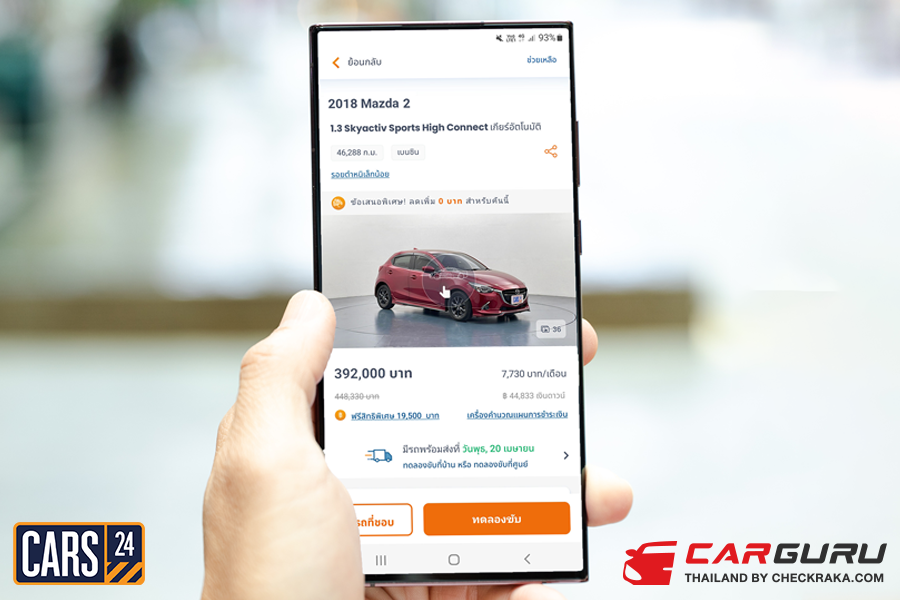 CARS24 รถยนต์มือสองสภาพนางฟ้า ไม่ว่าจะราคาไม่เกิน 4 แสนบาท หรือจะเป็นล้านบาทก็มีให้เลือกมากกว่า 1,300+ คัน พร้อมบริการจัดเตรียมเอกสารทุกขั้นตอนจนถึงการโอนรถและบริการจัดส่งรถยนต์ถึงบ้าน แถมซื้อรถยนต์กับ CARS24 ตอนนี้รับไปเลย โปรโมชั่นพิเศษ แพ็กเกจรับประกันคุณภาพรถ ค่าจดทะเบียน และจัดส่งรถถึงหน้าบ้านฟรี รวมมูลค่ากว่า 19,500 บาท