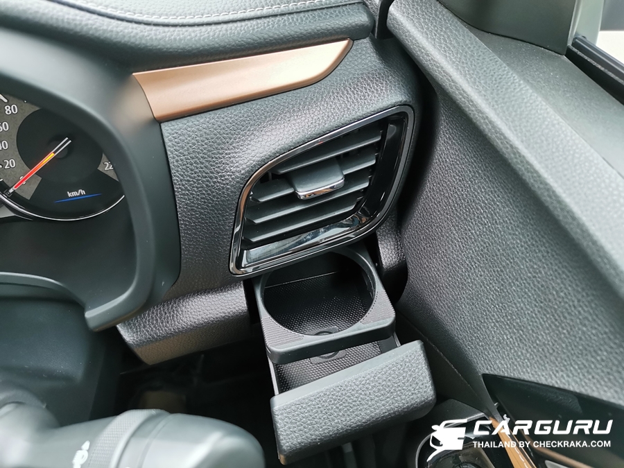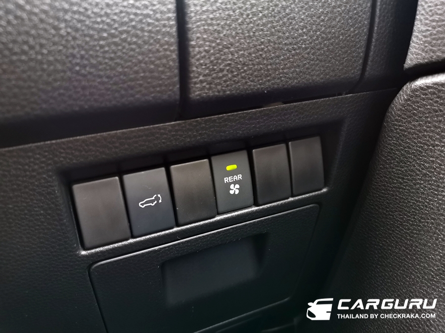 ปุ่มควบคุมระบบปรับอากาศใช้งานง่าย อย่างเช่น ปุ่มเพิ่ม-ลดแรงลม จะใช้เป็นสวิตช์เดียวเพียงแค่โยกขึ้น-เพิ่ม และโยกลง-ลด แรงลมไม่ต้องควานหา เหมาะกับการใช้งานจริงโดยไม่ต้องละสายตาจากถนน พร้อมระบบแยกปรับอุณหภูมิฝั่งซ้ายและขวา รวมถึงแยกสวิตช์เปิด-ปิดแอร์ตอนหลังเป็นอสระ และยังมีระบบฟอกอากาศ PM 2.5 อีกด้วยครับ โดยตัวเลขอุณหภูมิบนจอดิจิทัลนั้นสอดคล้องกับความจริง ซึ่งตอนขับช่วงฝนตกแอร์เย็นฉ่ำ ๆ เมื่อปรับเพิ่มเป็น 25 จะรู้สึกอุ่นขึ้นมาทันที แต่ถ้าขับในช่วงอากศร้อน ๆ ก็ปรับที่ 23 องศาก็นับว่าเพียงพอแล้ว ต้องบอกก่อนว่าในรถบางรุ่นนั้นตัวเลขจะไม่สอดคล้องกับอุณหภูมิจริงเท่าไหร่นักอย่างบางครั้งอากาศหนาวมาก ๆ เมื่อปรับตัวเลข 26 - 27 ก็ยังเย็นอยู่