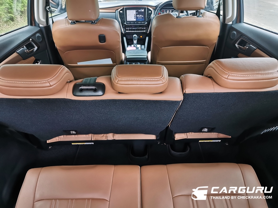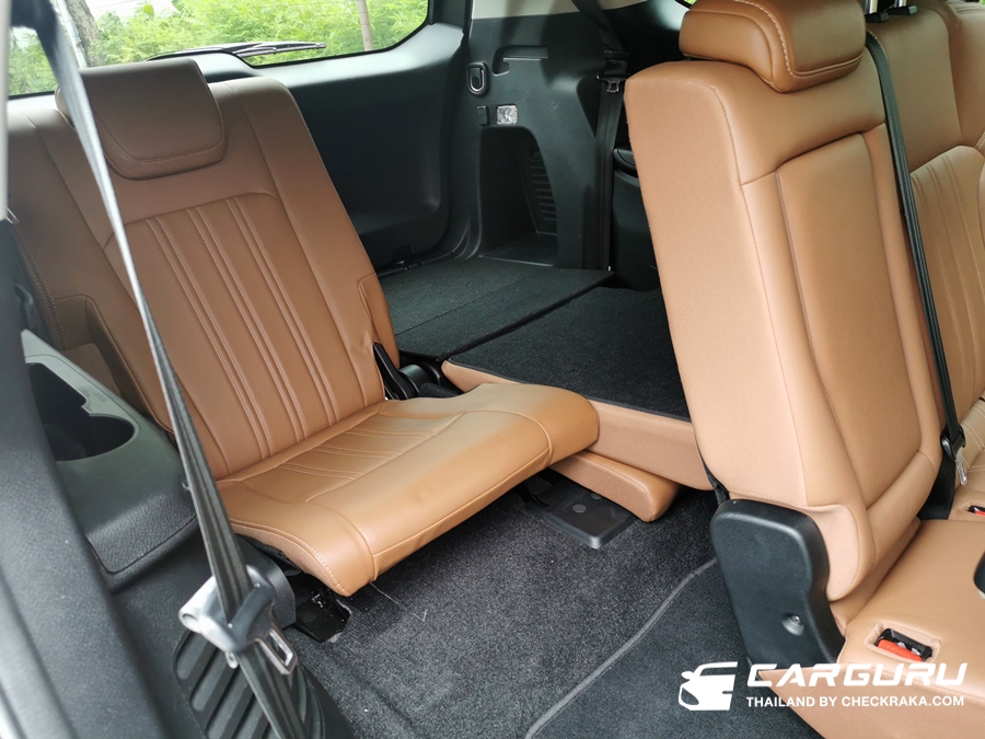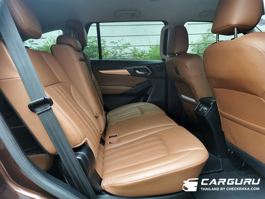 ในส่วนของเบาะนั่งแถวที่ 3 น่าจะเป็นสิ่งที่หลายคนกังวลว่าจะนั่งได้จริงหรือไม่ ต้องบอกว่าในมิว-เอ็กซ์ในตัวถังช่วงท้ายยาวขึ้นตั้งแต่ส่วนของประตูคู่หล้ง จึงทำให้พื้นที่ทั้งแถวที่ 2 และ 3 ถูกยืดเพิ่มขึ้น จึงนั่งได้สบายขึ้น แต่ด้วยตำแหน่งนั่งอยู้ท้ายของรถ จึงมีโอกาสทำให้คนนั่งเวียนหัวหรือเมารถเมื่อขับขึ้นลงเขา