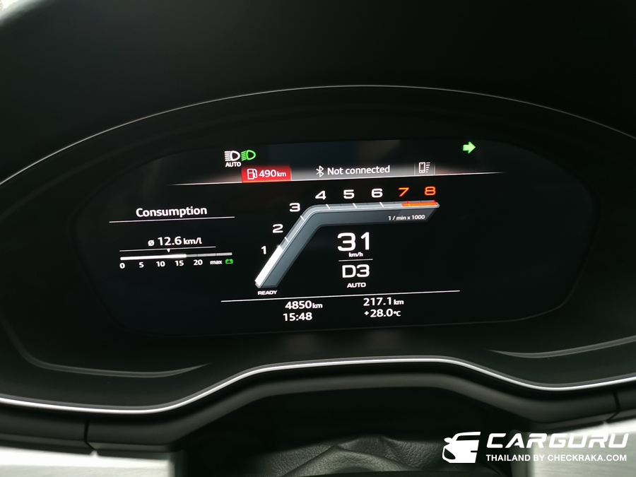 เมื่อพูดถึงรถที่มีขุมพลังเทอร์โบแรง ๆ ระดับ 200 กว่าแรงม้า มักจะสวนทางกับความประหยัด แต่ว่าใน A5 Cpoupe quattro กลับแตกต่างออกไป ผู้ทดสอบได้กลับมาสัมผัสเจ้า A5 Coupe 45 TFSI quattro อีกครั้ง โดยทั่วไปแล้วรถรัดะบนี้จะให้อัตราสิ้นเปลืองอยู่ราว ๆ 9 - 11 กม./ลิตร ไม่นับรุ่นเครื่องยนต์ฟูลไฮบริด แต่ใน A5 Coupe ทำได้สูงสุด 12.6 กม./ลิตร และเฉลี่ยนตลอดการเดินทางกว่า 200 กม. ได้ 11.5 กม./ลิตร ขับโดยใช้ความเร็วปกติและมีเร่งแซงและใช้ความเร็วสูง ๆ 115 กม./ชม. เกือบตลอดทริปที่ถนนโล่ง