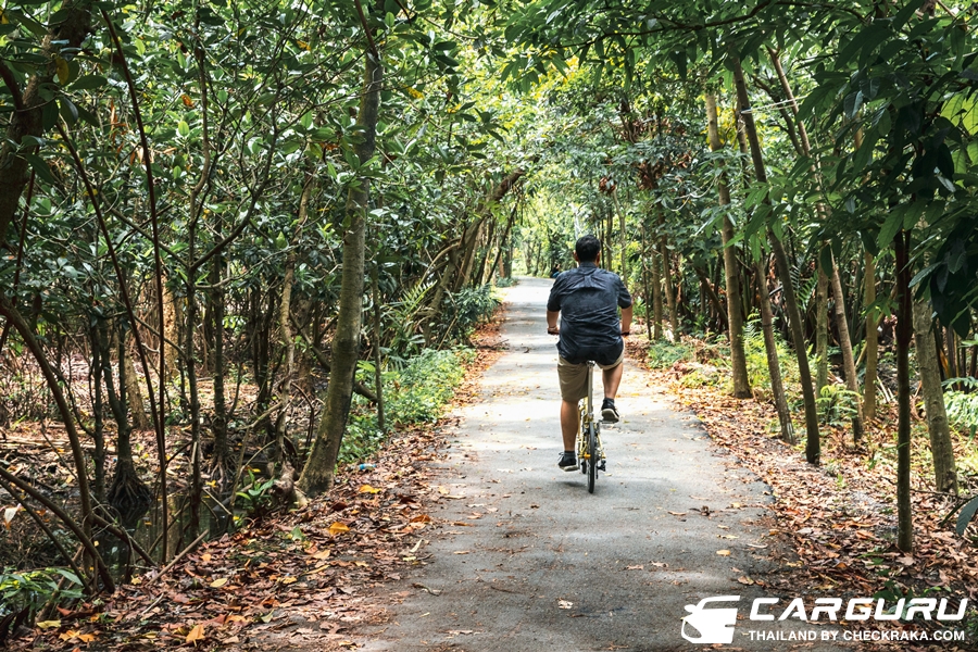 เมื่อมาถึงบางกระเจ้าก็หาที่ปั่นจักรยานไฟถ่ายรูปไปท่ามกลางธรรมชาติ "ป่ากลางเมือง" ที่นับวันจะหาดูยากขึ้นในตัวเมือง พักสายตาจากป่าคอนกรีตมาเป็นการชมะรรมชาติในป่าสีเขียวกันบ้าง