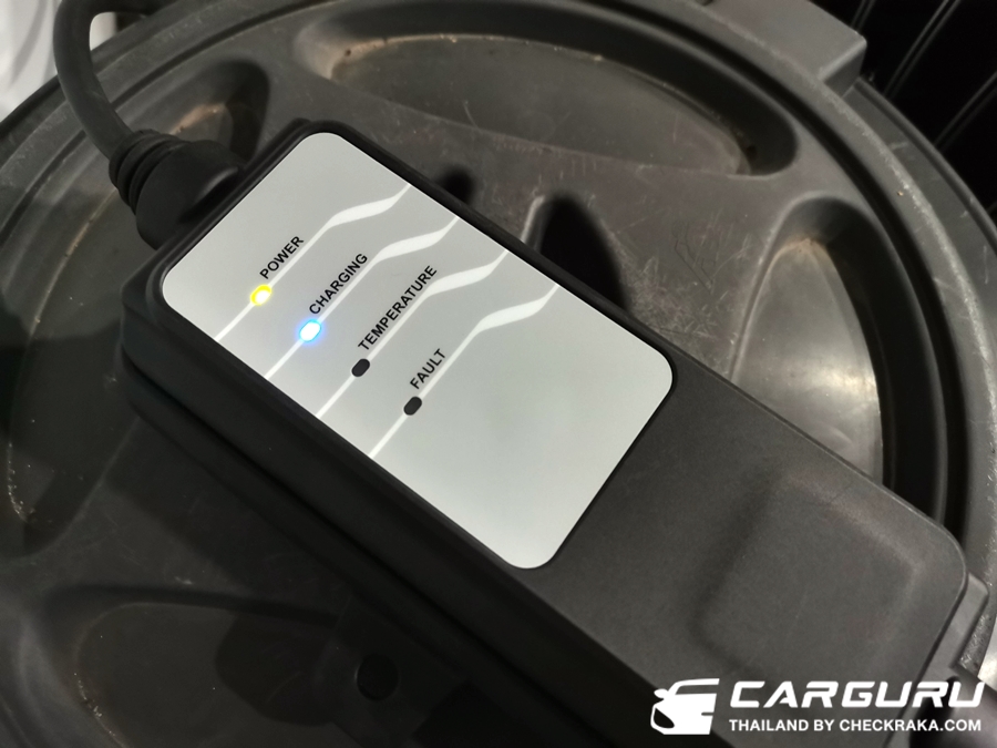 วิธีการเสียบจะมีบอกเอาไว้หมดในชุดชาร์จ ก็คือ ต้องเสียบฝั่งที่เป็นปลั๊ก 3 ตาเข้ากับเต้ารับก่อน และรอดูไฟสถานะสีเขียวบนตัวกล่องติดขึ้น จึงสามารถเสียบปลั๊กอีกฝั่งเข้ากับตัวรถ และดูไฟสีฟ้าบนกล่องติดขึ้นอีกครั้ง ซึ่งตรงนี้จะสังเกตุเพิ่มเติมในส่วนของปลั๊กตัวรถ เมื่อเปิดฝาออกมาจะมีไฟสีขาวติดค้าง และเมื่อต่อหัวชาร์จแล้วจะเปลี่ยนเป็นสีเขียวกระพริบ ๆ แสดงว่าเริ่มการชาร์จ สามารถดูสถานะการชาร์จได้จากบนมารวัดหรือบนกุญแจรีโมทถ้าอยู่ในระยะใกล้รถได้เลย หลังจากนั้นอย่างลืมล็อครถ เพราะคงต้องเสียบทิ้งเอาไว้ทั้งคืนกว่าจะเต็มครับ เมื่อชาร์จไฟเต็มแล้ว ไฟตรงหัวชาร์จตัวรถจะดับ เมื่อต้องการดึงออกต้องปลดล็อครถก่อนดึงออกทุกครั้ง และเก็บสายให้เรียบร้อย เป็นอันจบ เราก็จะได้แบตเตอรี่กลับมาเต็ม 100 เปอร์เซ็นต์อีกครั้ง