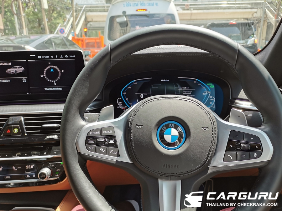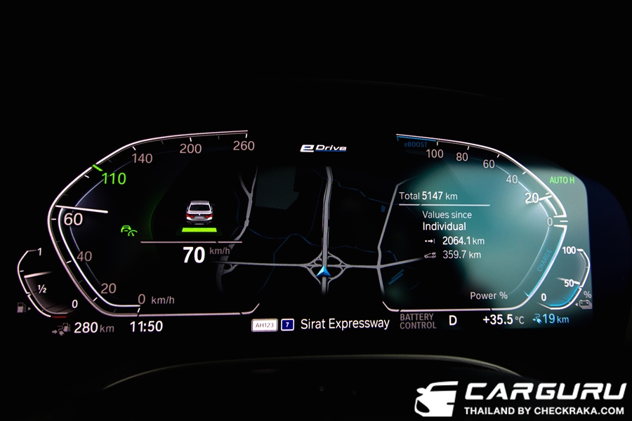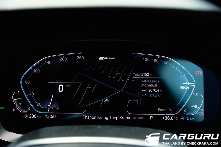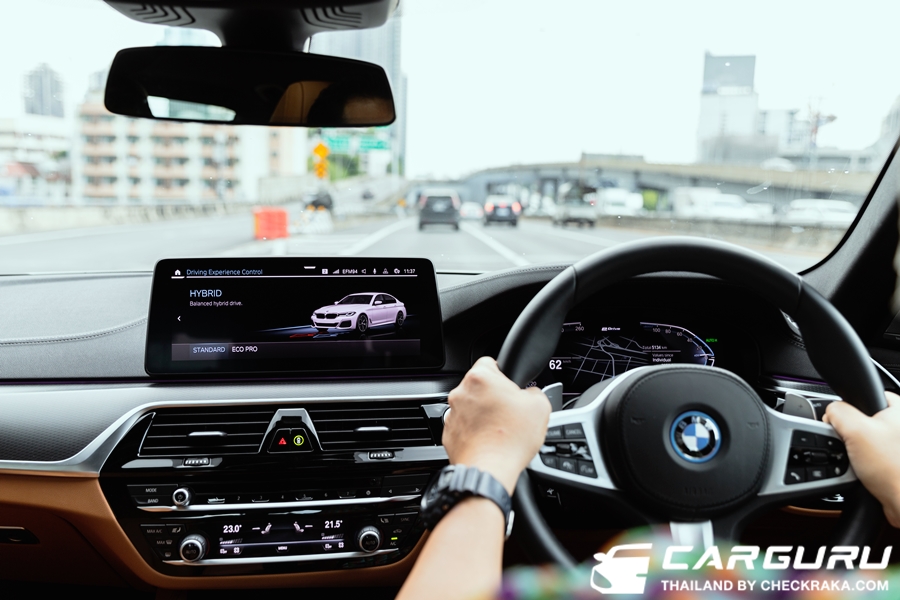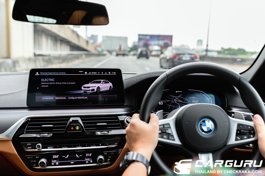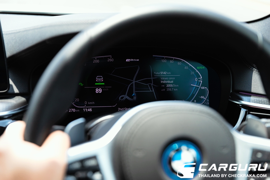 เมื่อเราใช้โหมดน้ำมันไปซักระยะหนึ่ง ให้ดูบริมาณของระดับแบตเตอรี่และระยะทางเมื่อได้ให้ตามที่ต้องก็สามารถกดเปลี่ยนโหมดเป็น Hybrid / EV ขับต่อไปได้อีกเยอะเลยครับ เท่ากับว่าขับน้ำมันสลับไฟฟ้าเป็นเรื่อย ๆ (ในกรณีเดินทางไกลกว่า 52 หรือระยะที่ EV วิ่งได้) แต่อาจจะต้องค่อยคิดคำนวนมากหน่อยว่าจะขับด้วยโหมดอะไรเมื่อไหร่ เพื่อให้ได้ระยะทางมากที่สุดและใช้น้ำมันเชื้อเพลิงน้อยที่สุด และใช้ BMW 530e คันนี้ได้อย่างคุ้มเม็ดเงินที่ลงทุนไปอีกด้วย